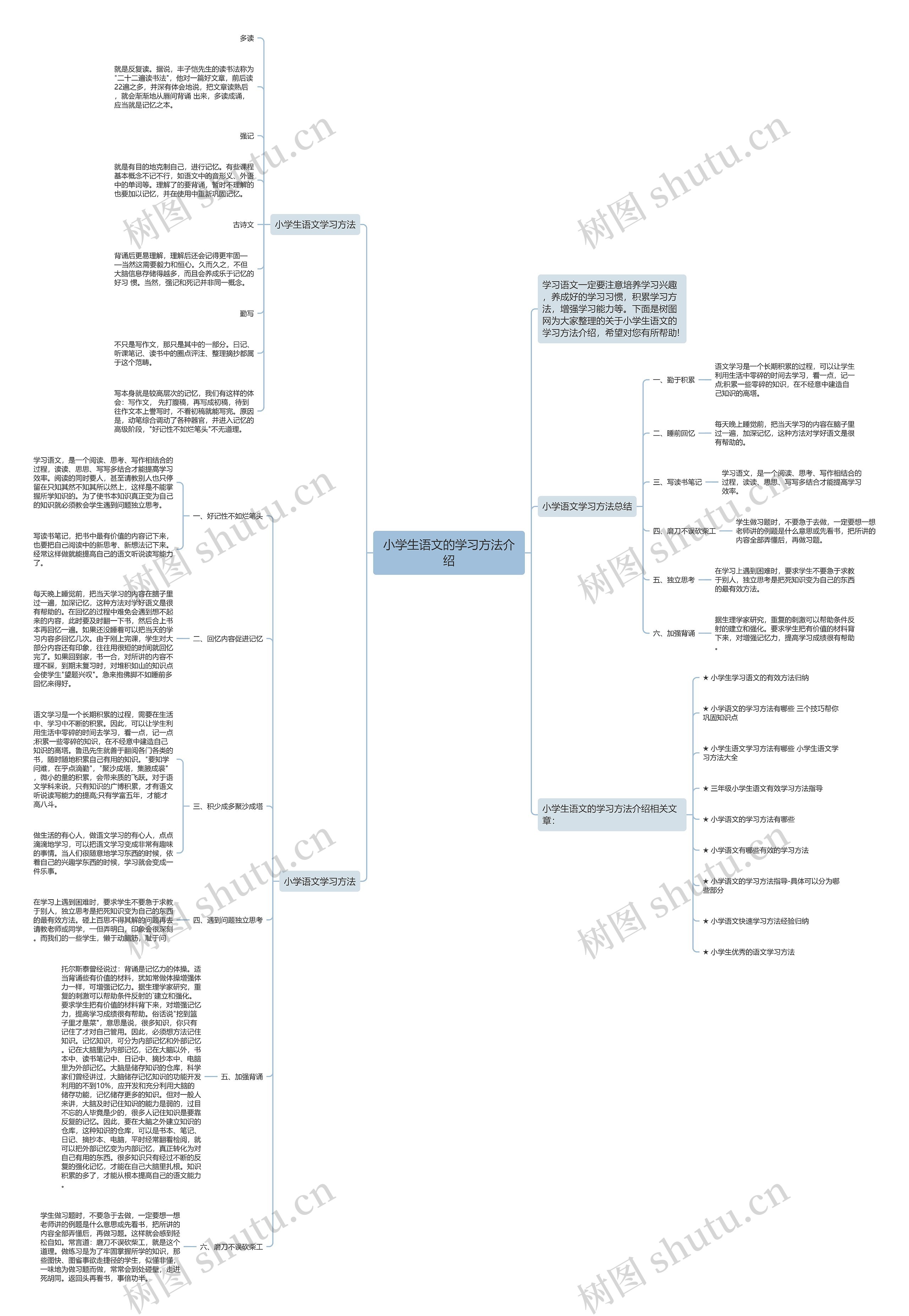 树图思维导图提供《小学生语文的学习方法介绍》在线思维导图免费制作,点击“编辑”按钮,可对《小学生语文的学习方法介绍》进行在线思维导图编辑,本思维导图属于思维导图模板主题,文件编号是:5619f2808cbb8bcdf6e70ca66f9b955d