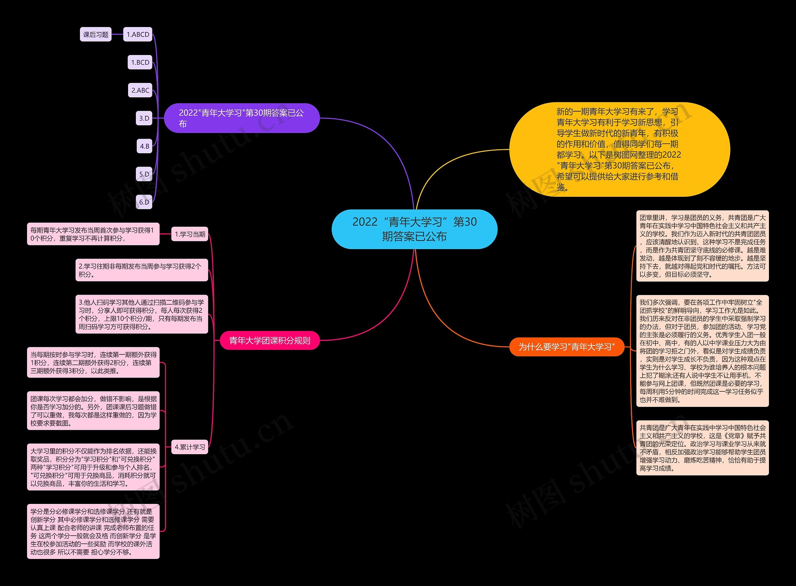 树图思维导图提供《2022“青年大学习”第30期答案已公布》在线思维导图免费制作,点击“编辑”按钮,可对《2022“青年大学习”第30期答案已公布》进行在线思维导图编辑,本思维导图属于思维导图模板主题,文件编号是:a51e342d99ea3d431ea0898c273a903b