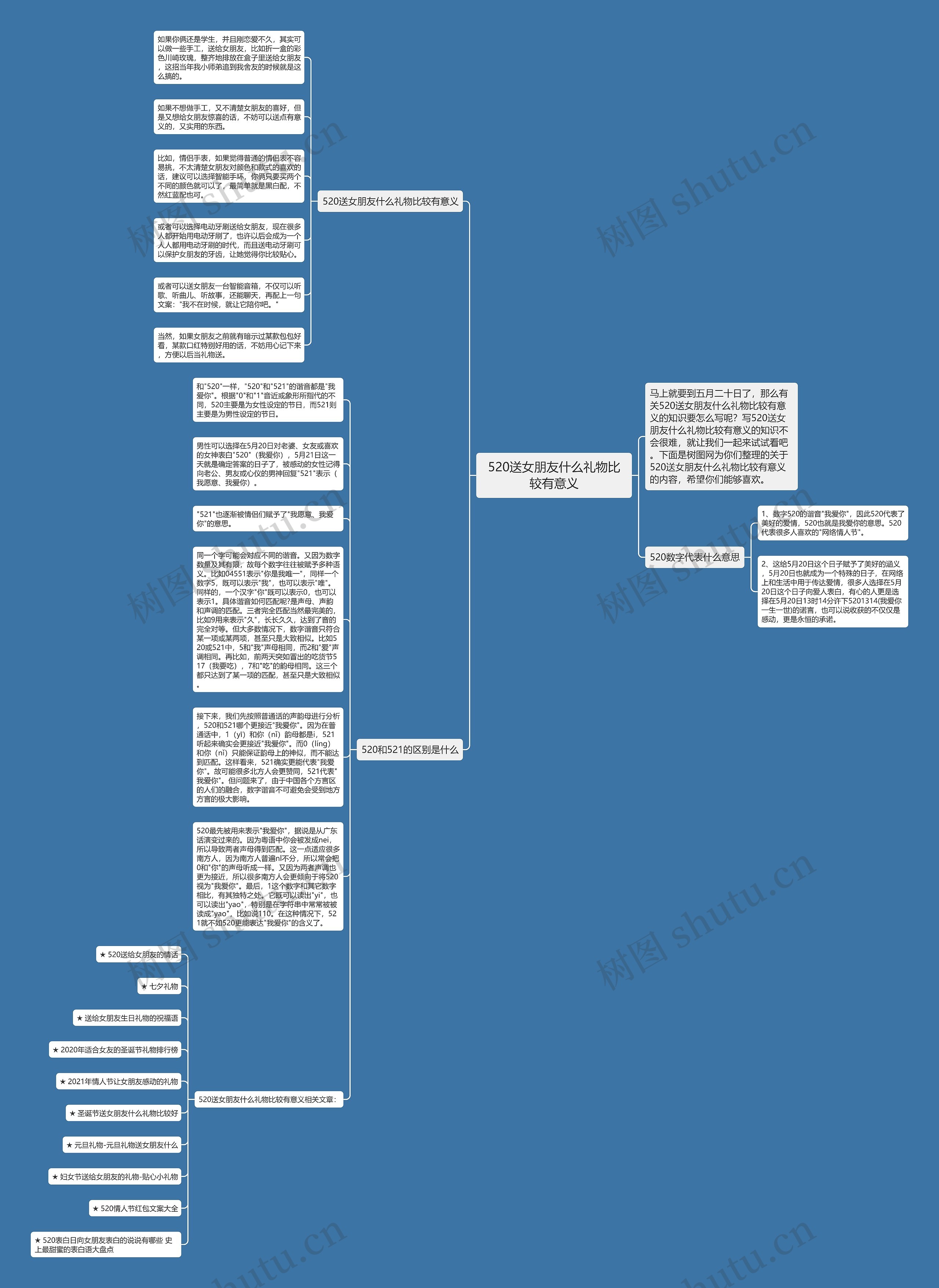 和"520"一样,"520"和"521"的谐音都是"我爱你"。根据"0"和"1"音近或象形所指代的不同,520主要是为女性设定的节日,而521则主要是为男性设定的节日。