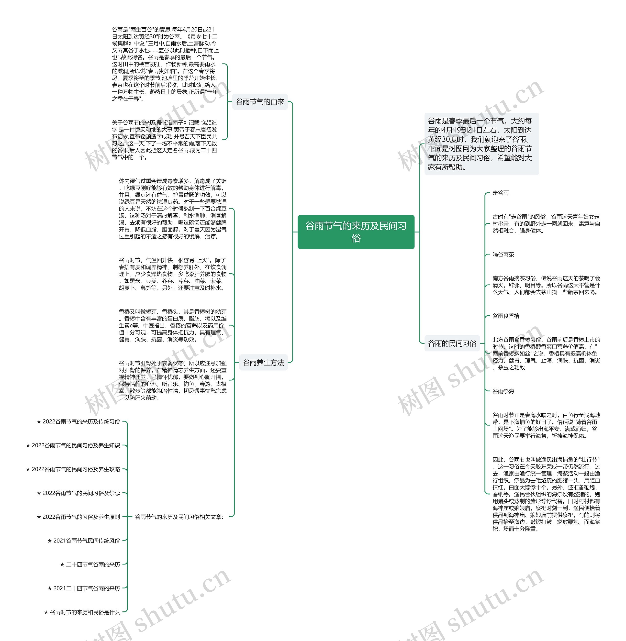 树图思维导图提供《谷雨节气的来历及民间习俗》在线思维导图免费制作,点击“编辑”按钮,可对《谷雨节气的来历及民间习俗》进行在线思维导图编辑,本思维导图属于思维导图模板主题,文件编号是:4a624d529fc3b79f763a6593ba02907d