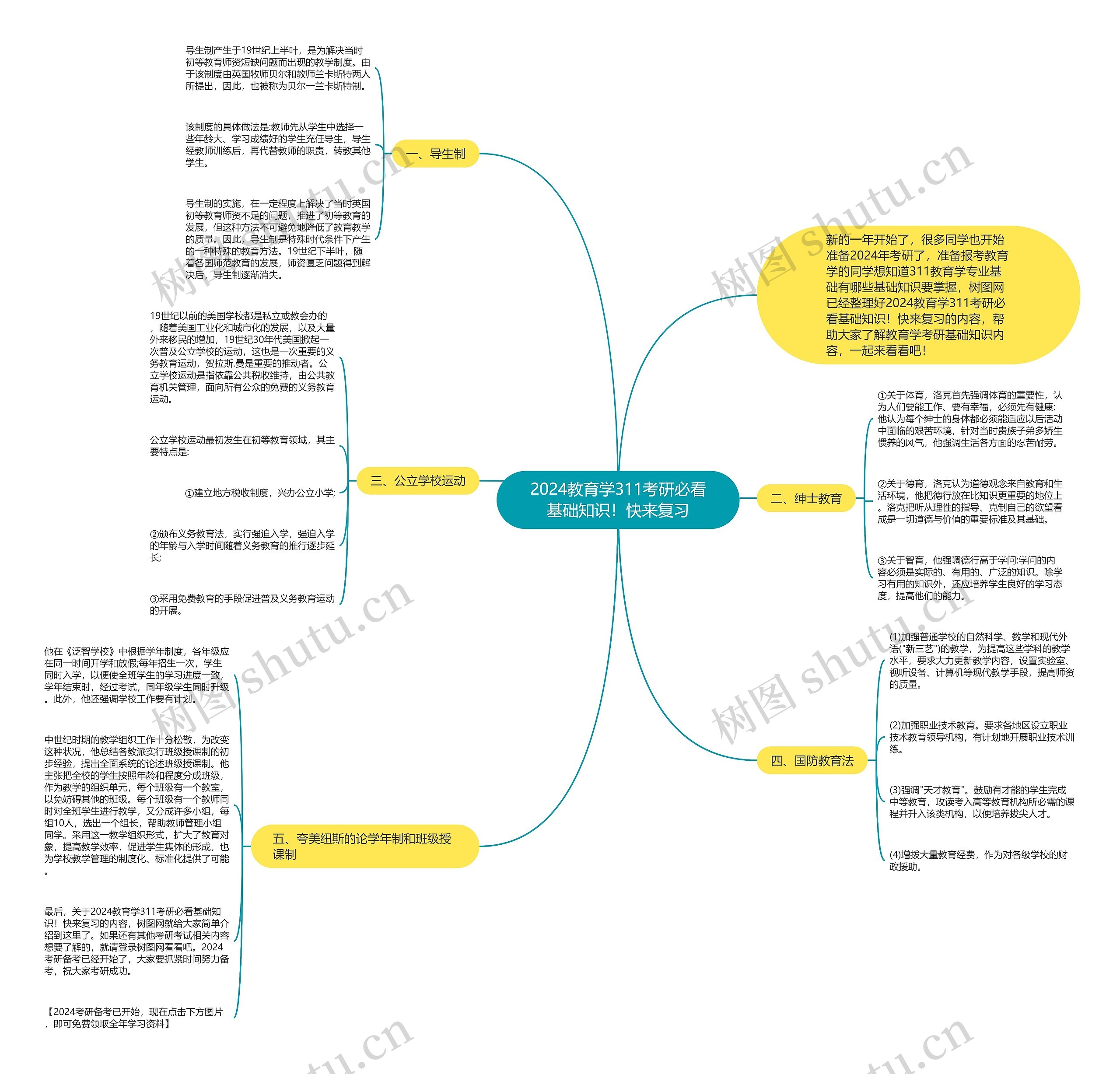 树图思维导图提供《2024教育学311考研必看基础知识!快来复习》在线思维导图免费制作,点击“编辑”按钮,可对《2024教育学311考研必看基础知识!快来复习》进行在线思维导图编辑,本思维导图属于思维导图模板主题,文件编号是:65815f77a814d403b2b17ece9f046882