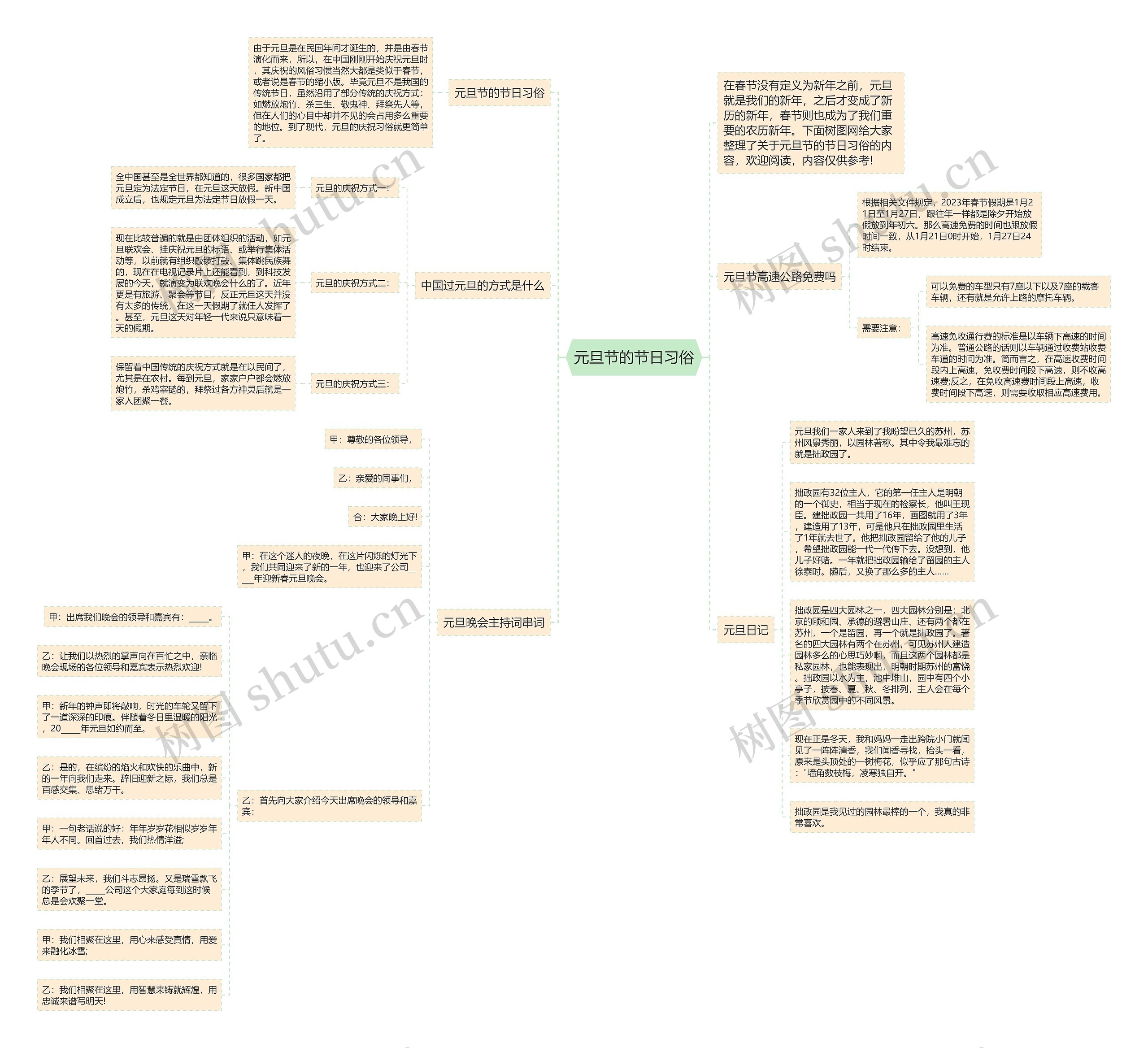 树图思维导图提供《元旦节的节日习俗》在线思维导图免费制作,点击“编辑”按钮,可对《元旦节的节日习俗》进行在线思维导图编辑,本思维导图属于思维导图模板主题,文件编号是:de20f640a729ec74b1641876fdfdda15