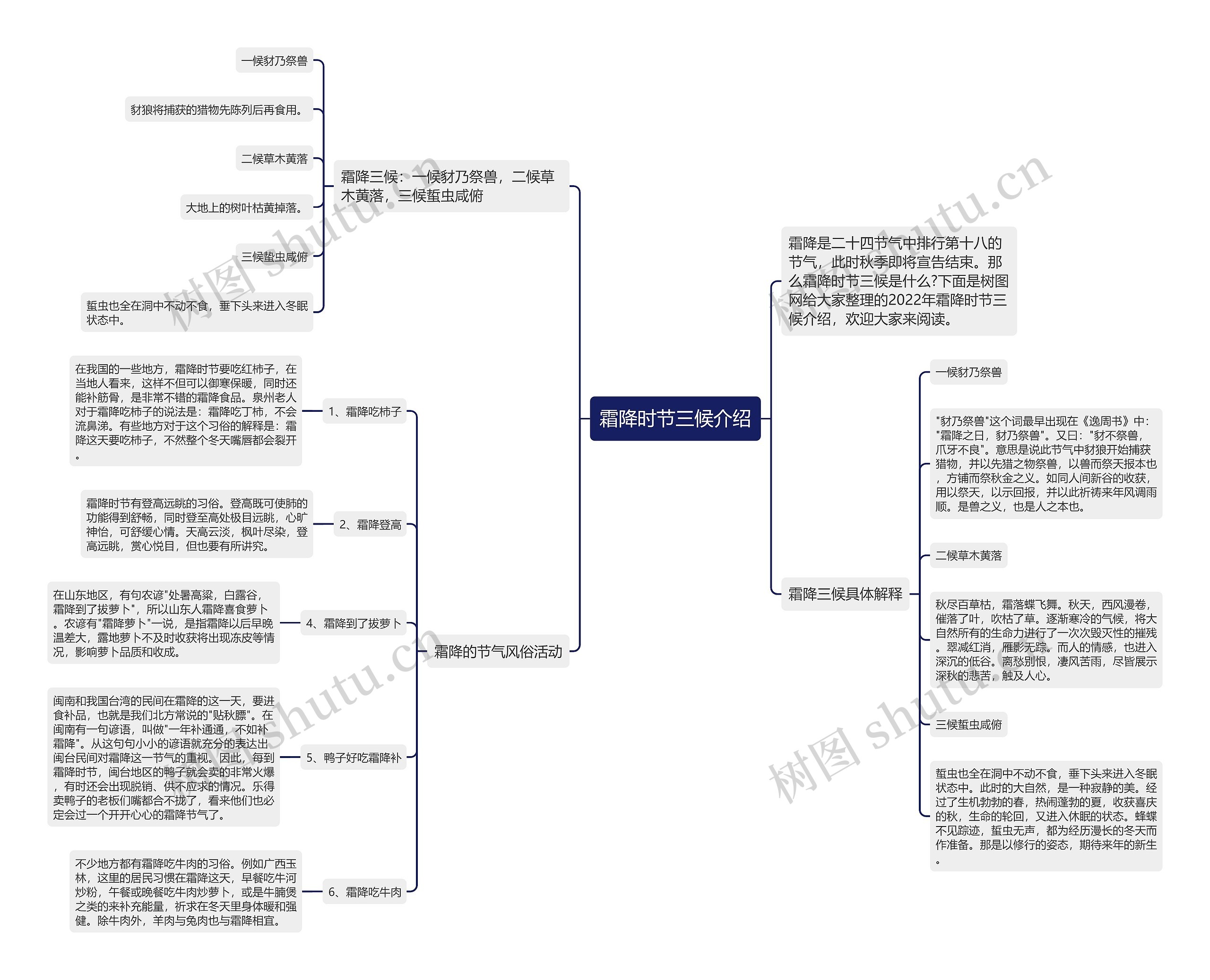 树图思维导图提供《霜降时节三候介绍》在线思维导图免费制作,点击“编辑”按钮,可对《霜降时节三候介绍》进行在线思维导图编辑,本思维导图属于思维导图模板主题,文件编号是:6aa2a1ac4a7519652117acbea4bb7b7e