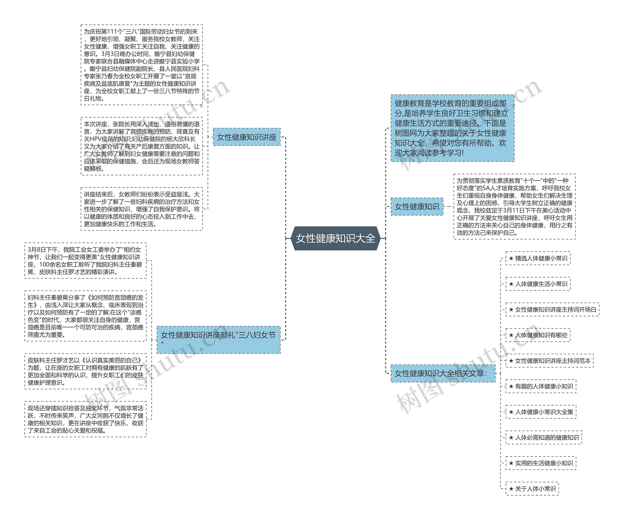 健康教育是学校教育的重要组成部分,是培养学生良好卫生习惯和建立健康生活方式的重要途径。下面是树图网为大家整理的关于女性健康知识大全,希望对您有所帮助。