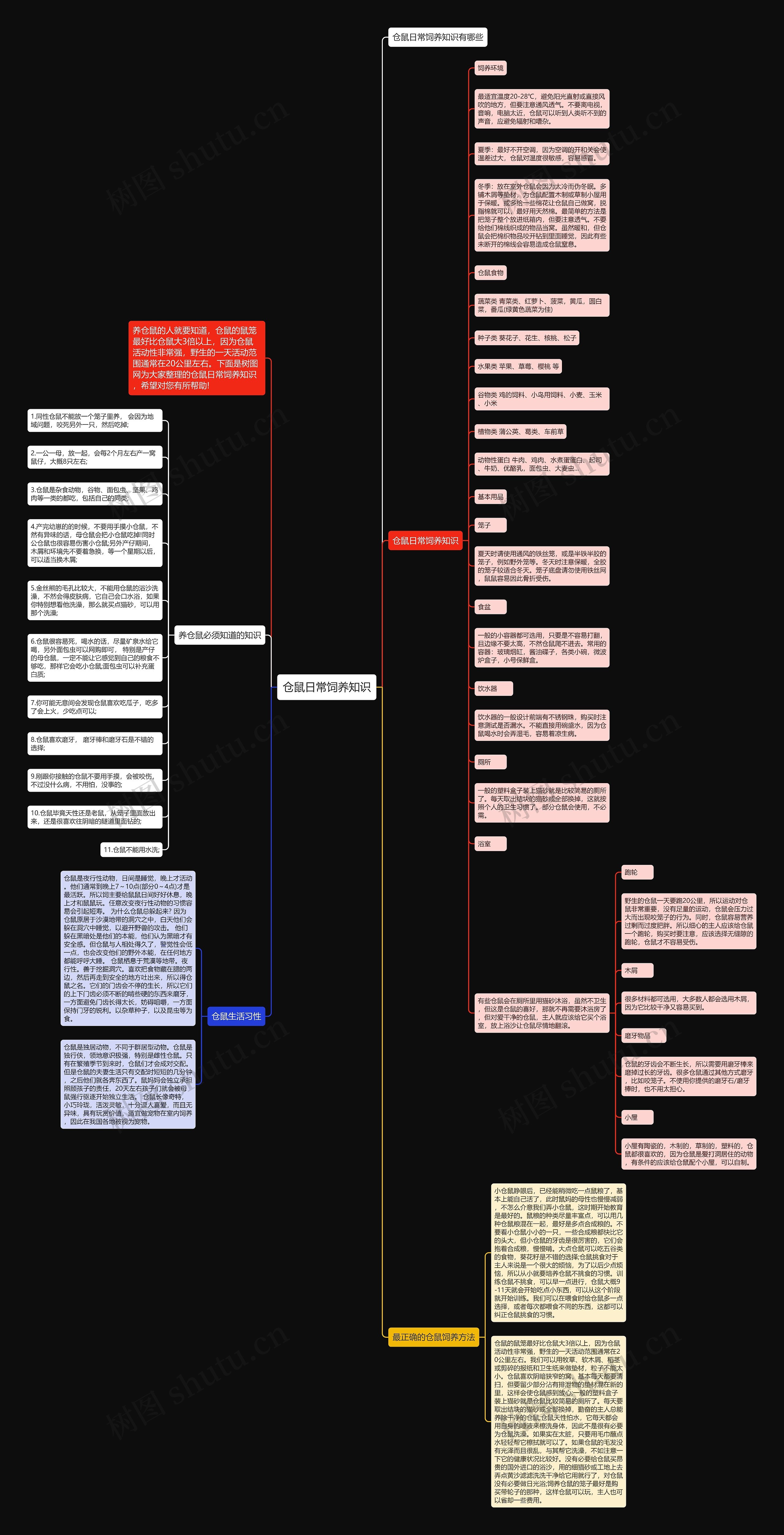 冬季:放在室外仓鼠会因为太冷而伪冬眠。多铺木屑等垫材,为仓鼠配置木制或草制小屋用于保暖。或多给一些棉花让仓鼠自己做窝,脱脂棉就可以,最好用天然棉。最简单的方法是把笼子整个放进纸箱内,但要注意透气。不要给他们棉线织成的物品当窝。虽然暖和,但仓鼠会把棉织物品咬开钻到里面睡觉,因此有些未断开的棉线会容易造成仓鼠窒息。