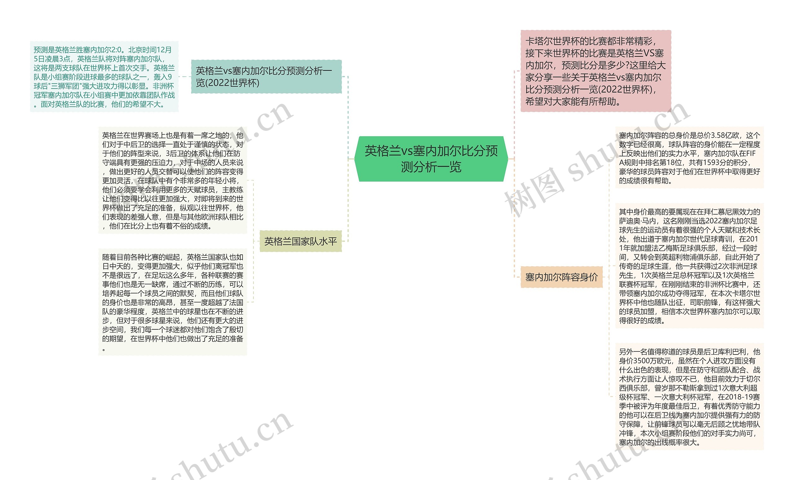 树图思维导图提供《英格兰vs塞内加尔比分预测分析一览》在线思维导图免费制作,点击“编辑”按钮,可对《英格兰vs塞内加尔比分预测分析一览》进行在线思维导图编辑,本思维导图属于思维导图模板主题,文件编号是:04fa2fea6069a1f2d739eb9fbc3bb3f2