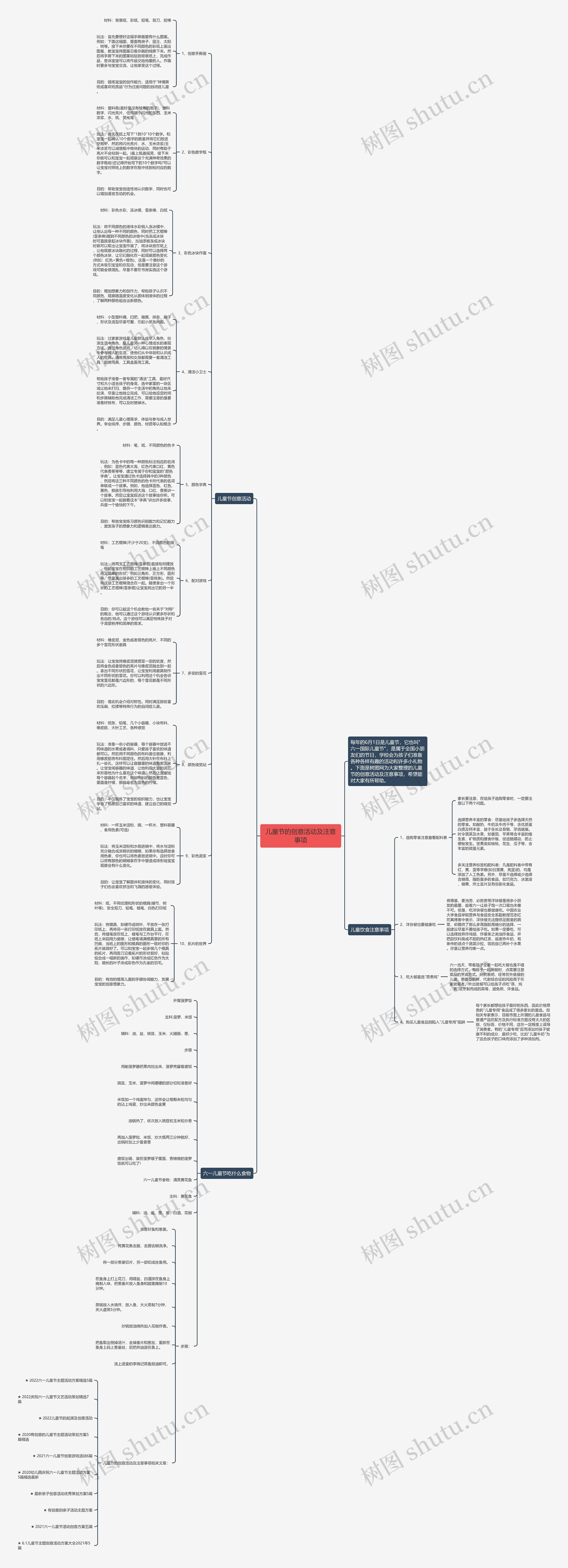 树图思维导图提供《儿童节的创意活动及注意事项》在线思维导图免费制作,点击“编辑”按钮,可对《儿童节的创意活动及注意事项》进行在线思维导图编辑,本思维导图属于思维导图模板主题,文件编号是:688f3ad1b54f011e662ad6fc717c7e8a