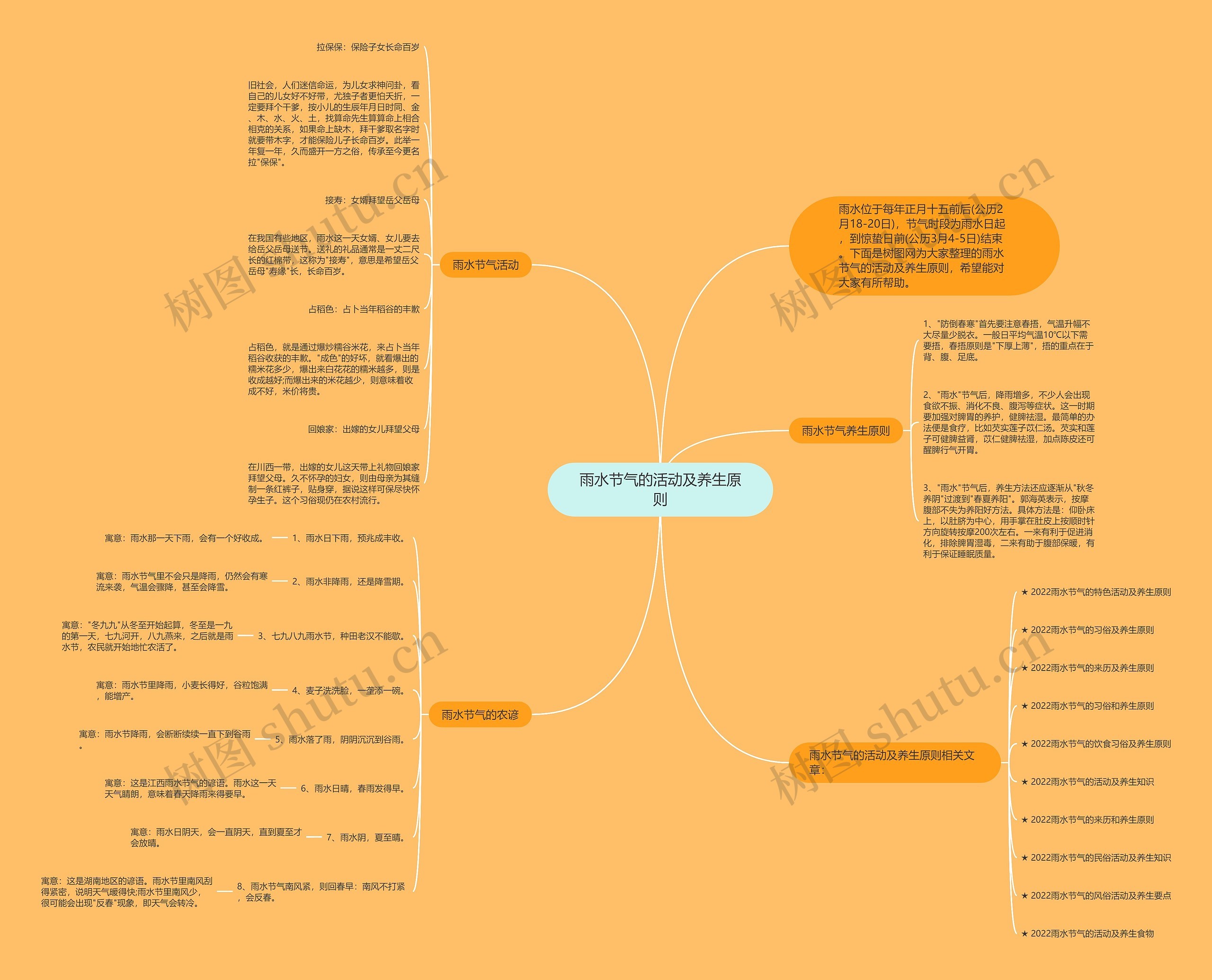 树图思维导图提供《雨水节气的活动及养生原则》在线思维导图免费制作,点击“编辑”按钮,可对《雨水节气的活动及养生原则》进行在线思维导图编辑,本思维导图属于思维导图模板主题,文件编号是:e7f81f7ad1160684ec58c415da5b8316