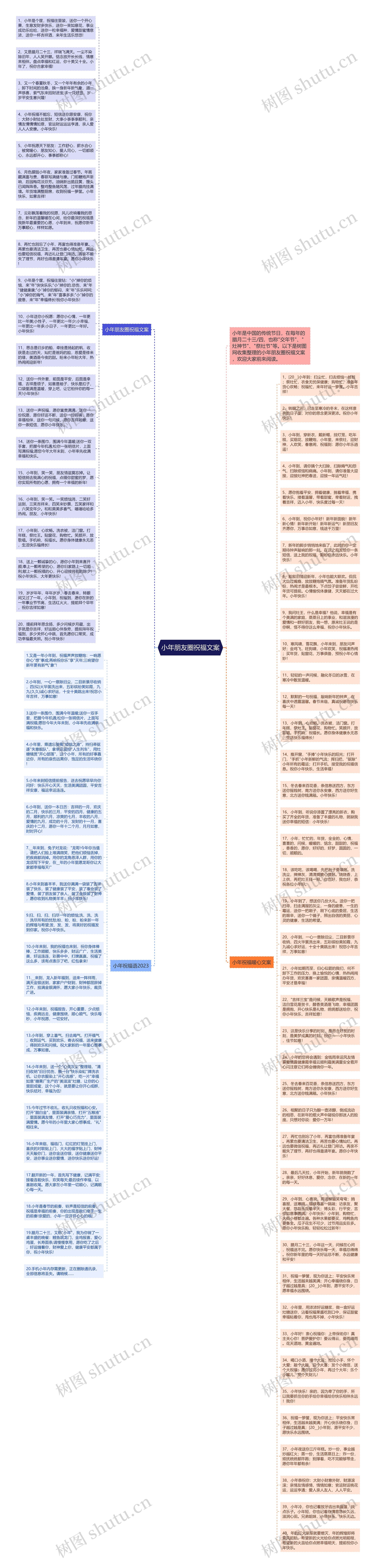 38、小年恭祝你:大财小财意外财,财源滚滚;亲情友情感情,情情如意;官运财运桃花运,运运亨通;爱人亲人友人,人人平安。