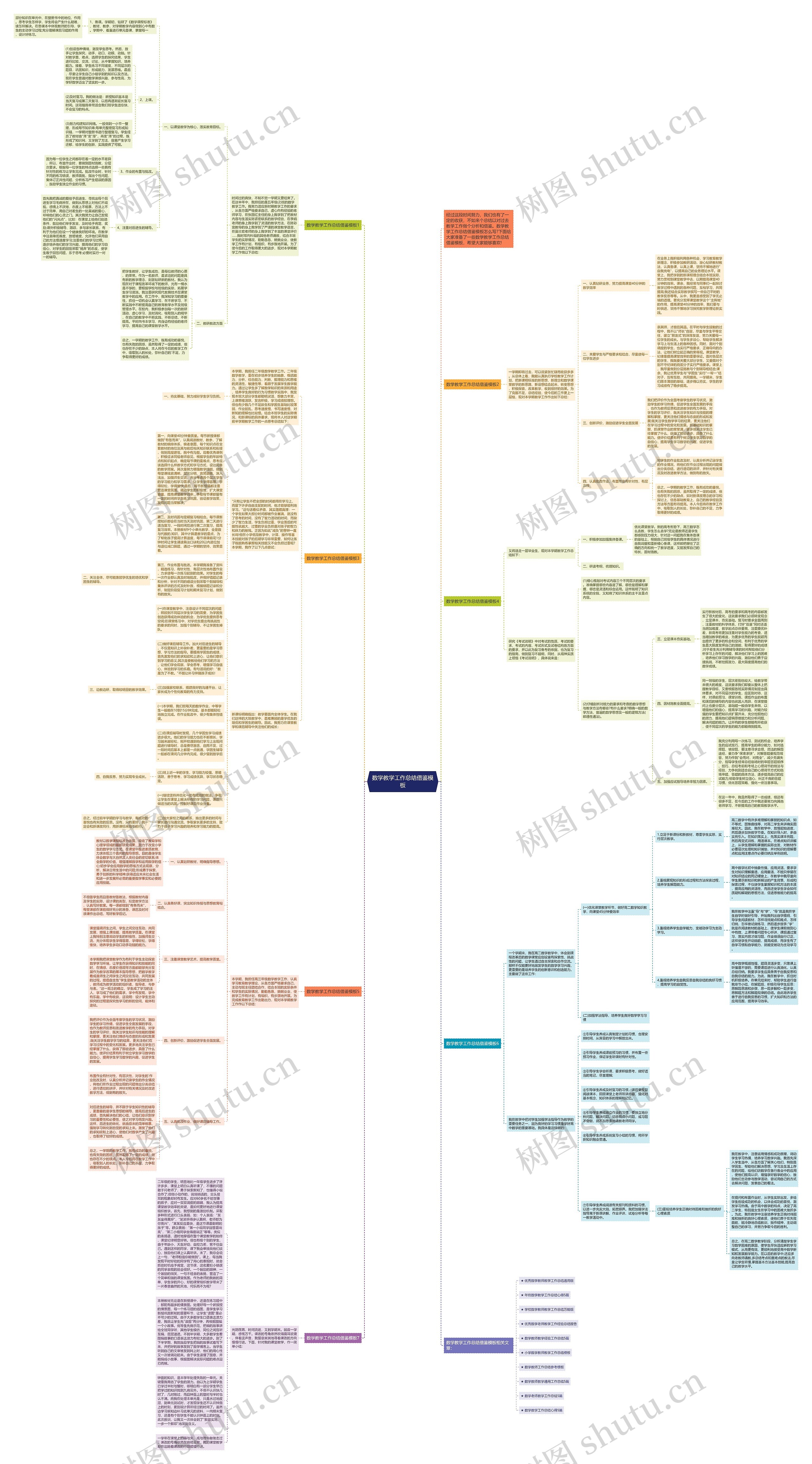 本模板的核心是数学教学工作总结借鉴思维导图,作者对自己教学工作中的一些经验做了总结,包含课堂教学落实教育目标、备课、上课、作业的布置与批改,在备课时,注重把教材内容与生活实际联系起来,上课时,采用了灵活的教学方法,及时复习知识,努力构建知识网络,还提到了作业布置时要因材施教,分层次要求,使教学工作有计划、有组织、有步骤地开展,取得了较好的效果。