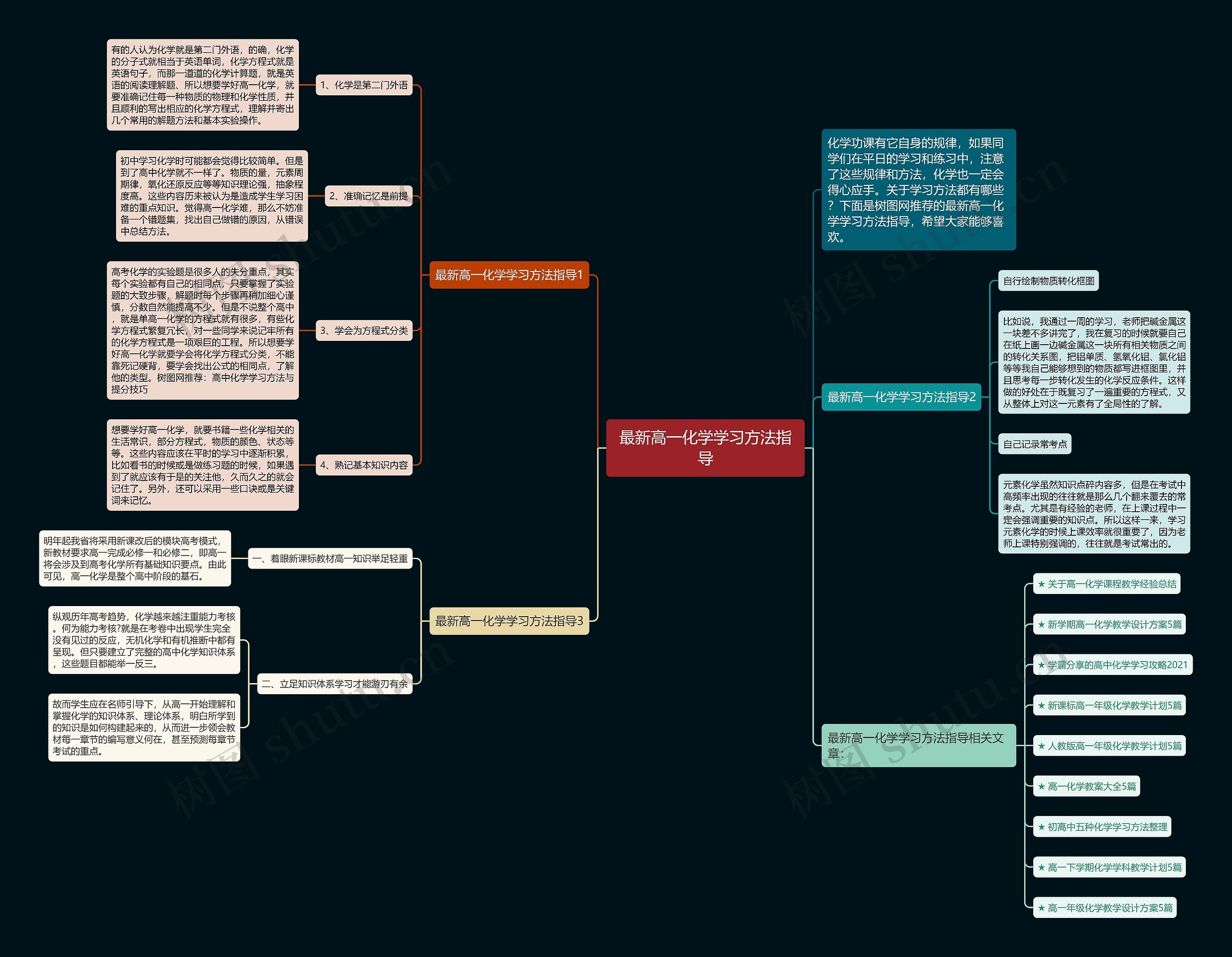 树图思维导图提供《最新高一化学学习方法指导》在线思维导图免费制作,点击“编辑”按钮,可对《最新高一化学学习方法指导》进行在线思维导图编辑,本思维导图属于思维导图模板主题,文件编号是:2d9e4faa0c0a2da7068316d1d7af7043