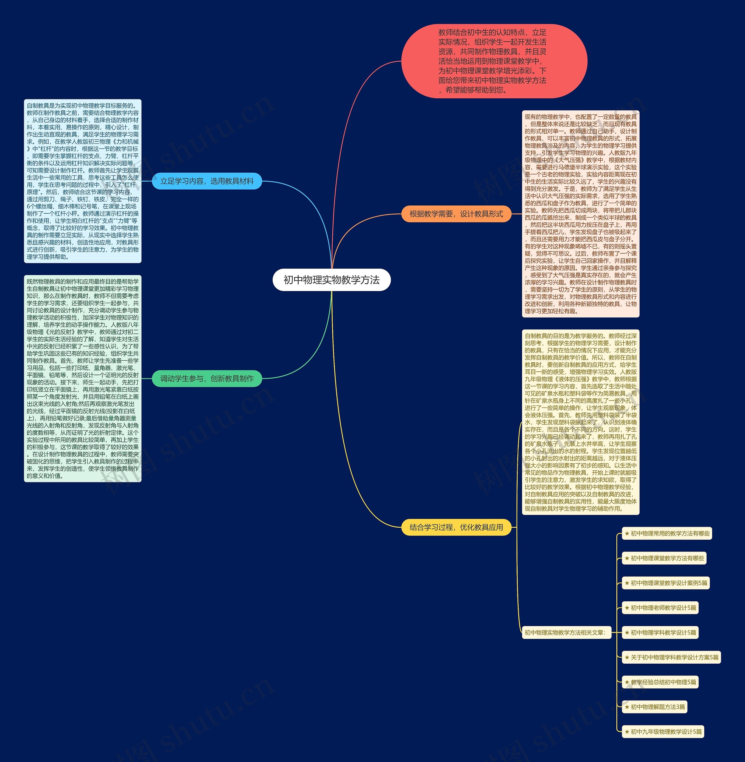 树图思维导图提供《初中物理实物教学方法》在线思维导图免费制作,点击“编辑”按钮,可对《初中物理实物教学方法》进行在线思维导图编辑,本思维导图属于思维导图模板主题,文件编号是:4e614136495f32bf64cb96ea3598bd51