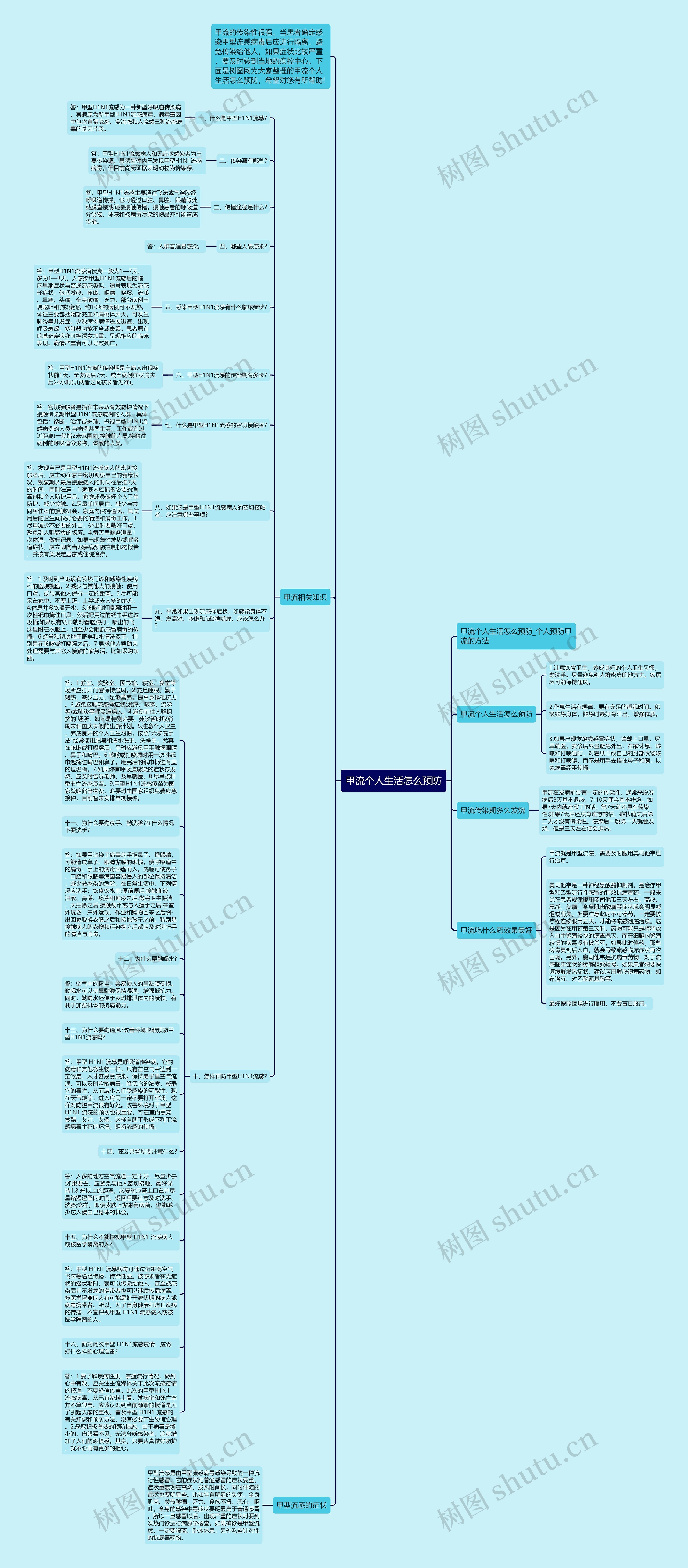 答:1.教室、实验室、图书馆、寝室、食堂等场所应打开门窗保持通风。2.充足睡眠、勤于锻炼、减少压力、足够营养,提高身体抵抗力。3.避免接触流感样症状(发热,咳嗽,流涕等)或肺炎等呼吸道病人。4.避免前往人群拥挤的`场所,如不是特别必要,建议暂时取消周末和国庆长假的出游计划。5.注意个人卫生,养成良好的个人卫生习惯,按照"六步洗手法"经常使用肥皂和清水洗手,洗净手,尤其在咳嗽或打喷嚏后。平时应避免用手触摸眼睛、鼻子和嘴巴。6.咳嗽或打喷嚏时用一次性纸巾遮掩住嘴巴和鼻子,用完后的纸巾扔进有盖的垃圾桶。7.如果你有呼吸道感染的症状或发烧,应及时告诉老师、及早就医。8.尽早接种季节性流感疫苗。9.甲型H1N1流感疫苗为国家战略储备物资,必要时由国家组织免费应急接种,目前暂未安排常规接种。