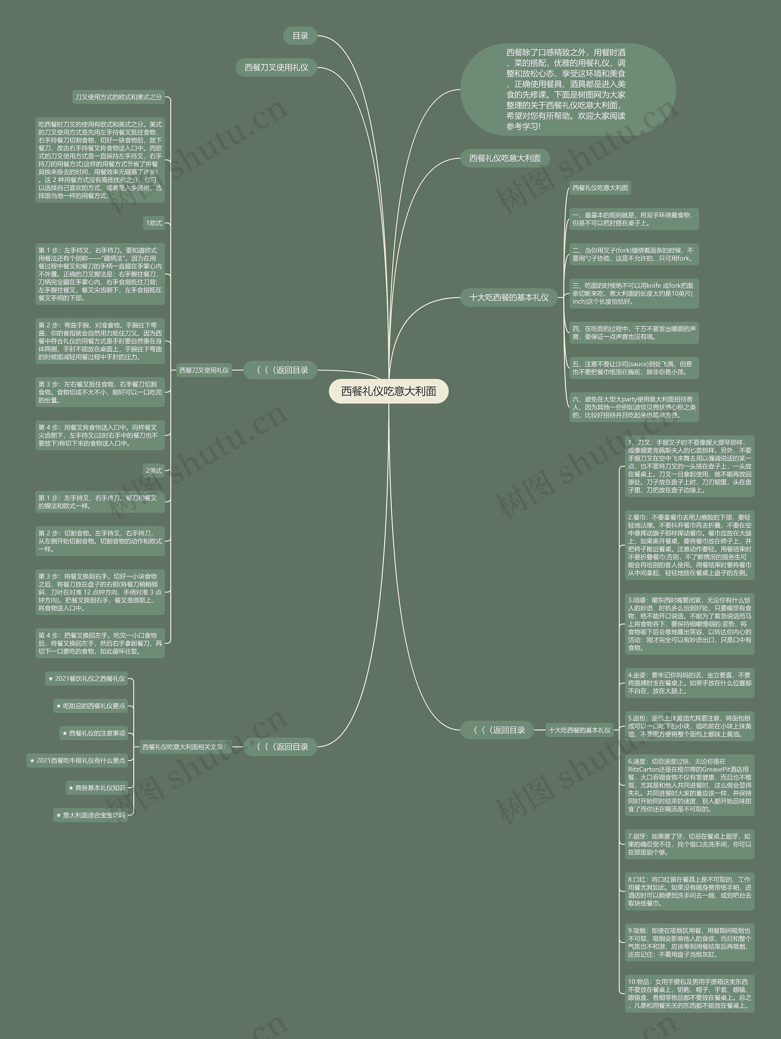 1、刀叉:手握叉子时不要像握大提琴那样,或像握麦克佩斯夫人的匕首那样。另外,不要手握刀叉在空中飞来舞去用以强调说话的某一点,也不要将刀叉的一头搭在盘子上,一头放在餐桌上。刀叉一旦拿起使用,就不能再放回原处。刀子放在盘子上时,刀刃朝里,头在盘子里,刀把放在盘子边缘上。
