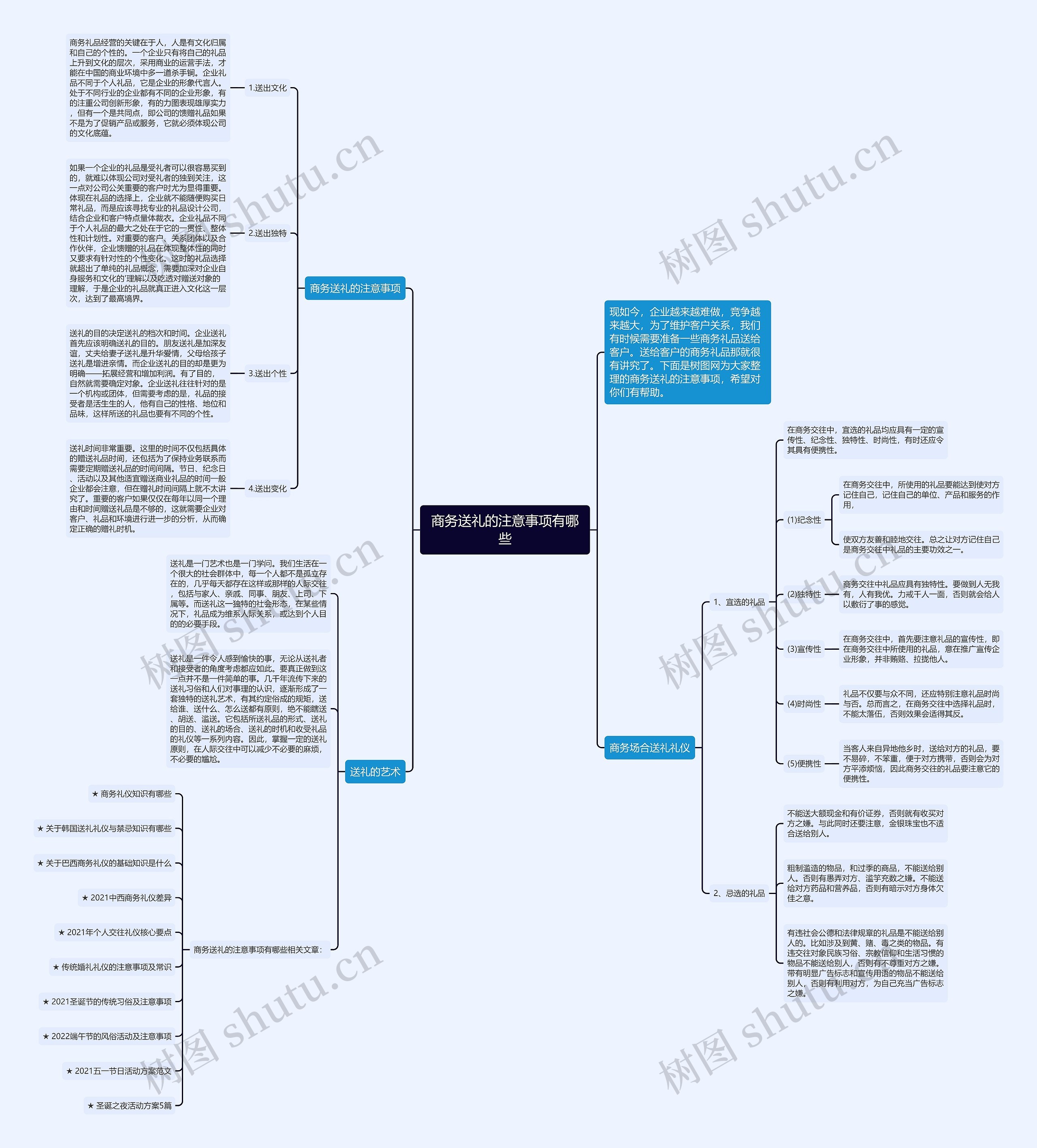 树图思维导图提供《商务送礼的注意事项有哪些》在线思维导图免费制作,点击“编辑”按钮,可对《商务送礼的注意事项有哪些》进行在线思维导图编辑,本思维导图属于思维导图模板主题,文件编号是:d2719196a53a3bf2e32f1ebf0b02f728