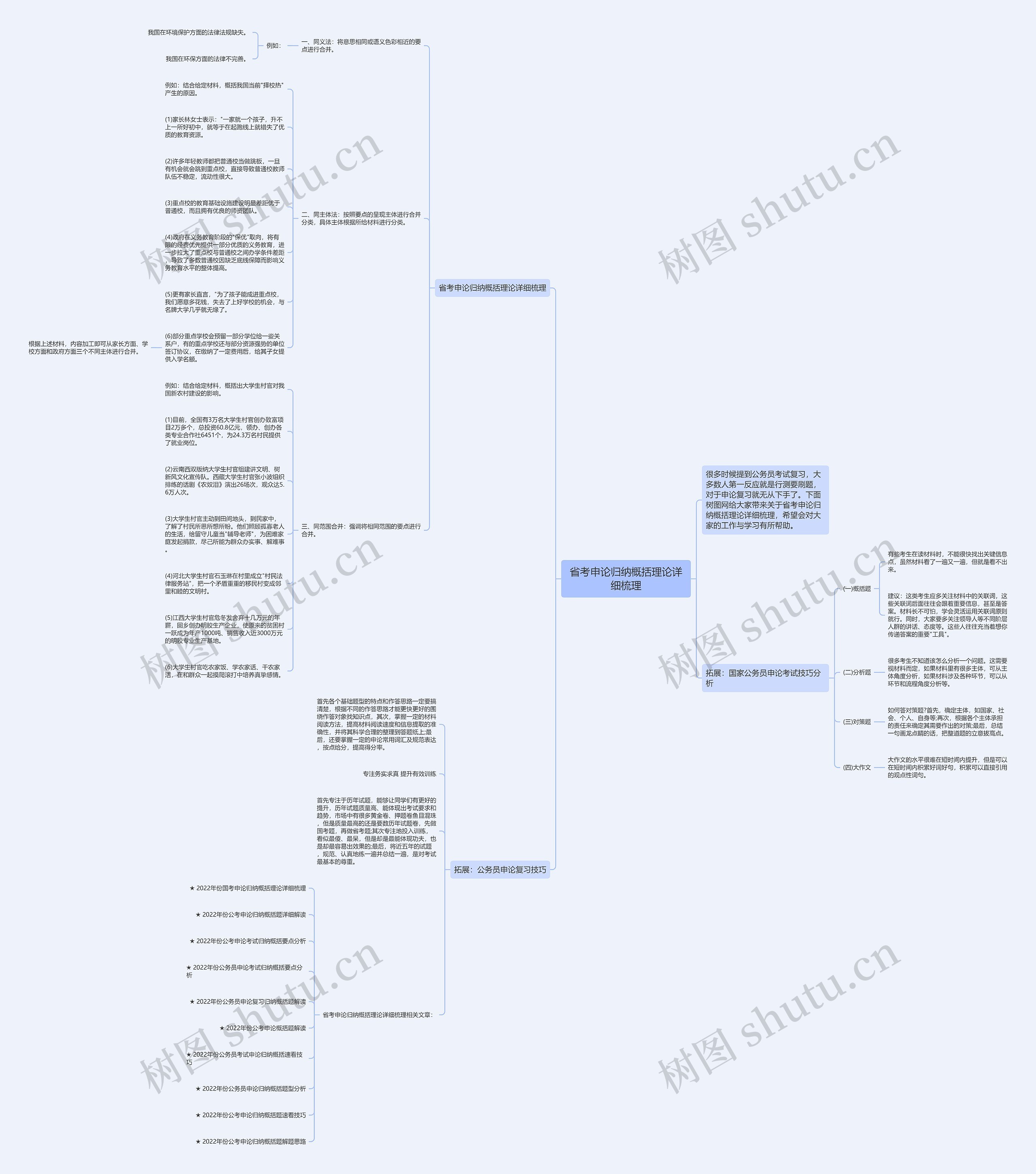 树图思维导图提供《省考申论归纳概括理论详细梳理》在线思维导图免费制作,点击“编辑”按钮,可对《省考申论归纳概括理论详细梳理》进行在线思维导图编辑,本思维导图属于思维导图模板主题,文件编号是:00f1fdab35536139ce819c80fd1395ba