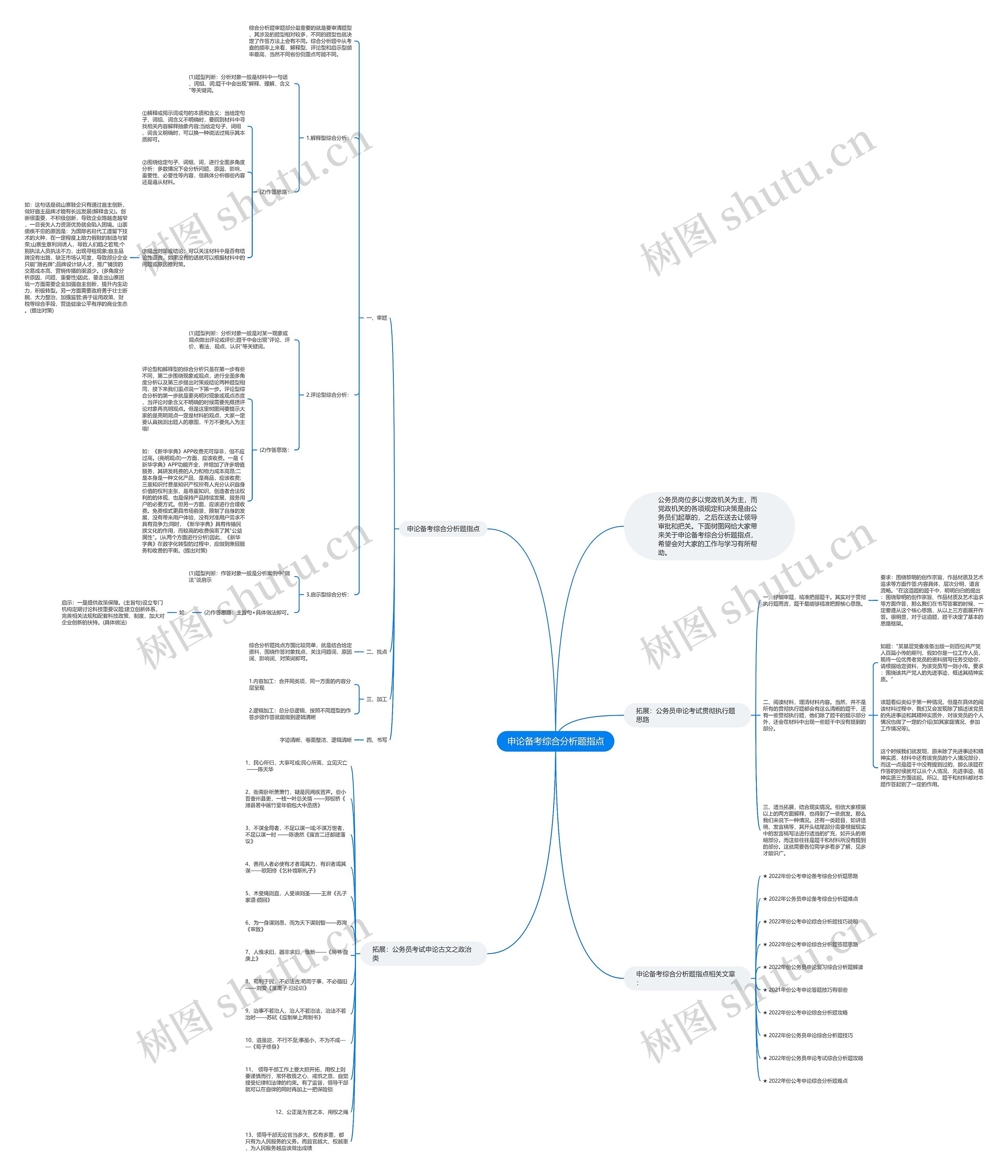 树图思维导图提供《申论备考综合分析题指点》在线思维导图免费制作,点击“编辑”按钮,可对《申论备考综合分析题指点》进行在线思维导图编辑,本思维导图属于思维导图模板主题,文件编号是:9c5c6fd3e1882c1ef61cab8c78fee286