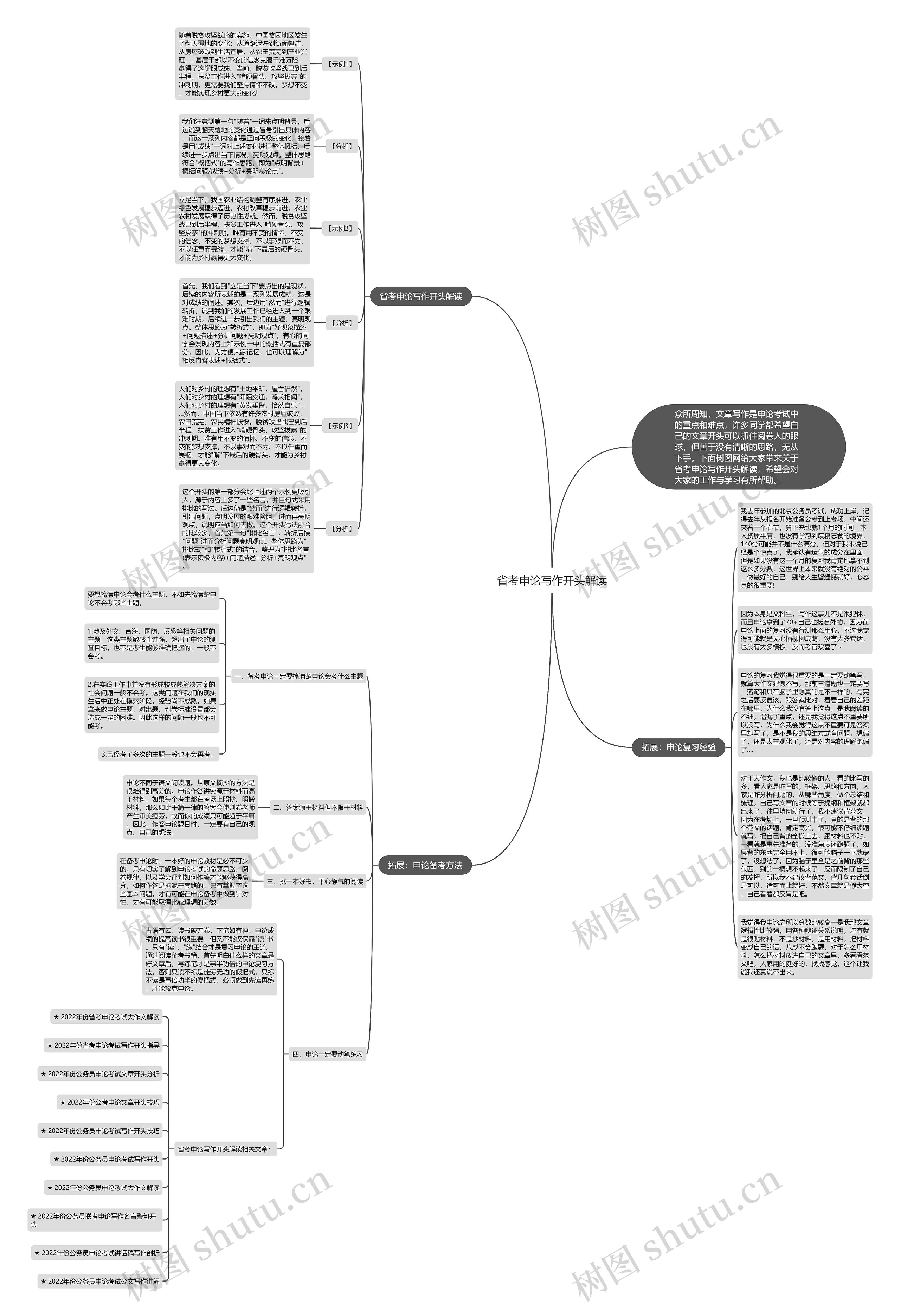 对于大作文,我也是比较懒的人,看的比写的多,看人家是咋写的,框架、思路和方向,人家是咋分析问题的,从哪些角度,做个总结和梳理,自己写文章的时候等于提纲和框架就都出来了,往里填肉就行了,我不建议背范文,因为在考场上,一旦预测中了,真的是背的那个范文的话题,肯定高兴,很可能不仔细读题就写,把自己背的全搬上去,跟材料也不贴,一看就是事先准备的,没准角度还跑题了,如果背的东西完全用不上,很可能脑子一下就蒙了,没想法了,因为脑子里全是之前背的那些东西,别的一概想不起来了,反而限制了自己的发挥,所以我不建议背范文,背几句套话倒是可以,适可而止就好,不然文章就是假大空,自己看着都反胃是吧。
