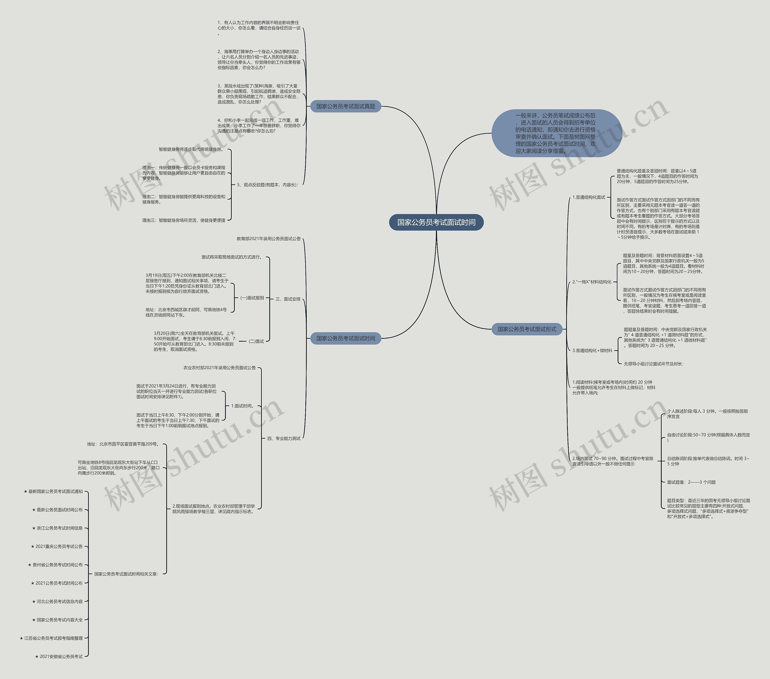 树图思维导图提供《国家公务员考试面试时间》在线思维导图免费制作,点击“编辑”按钮,可对《国家公务员考试面试时间》进行在线思维导图编辑,本思维导图属于思维导图模板主题,文件编号是:9e56aeb2a74aa816bdc09717af796165
