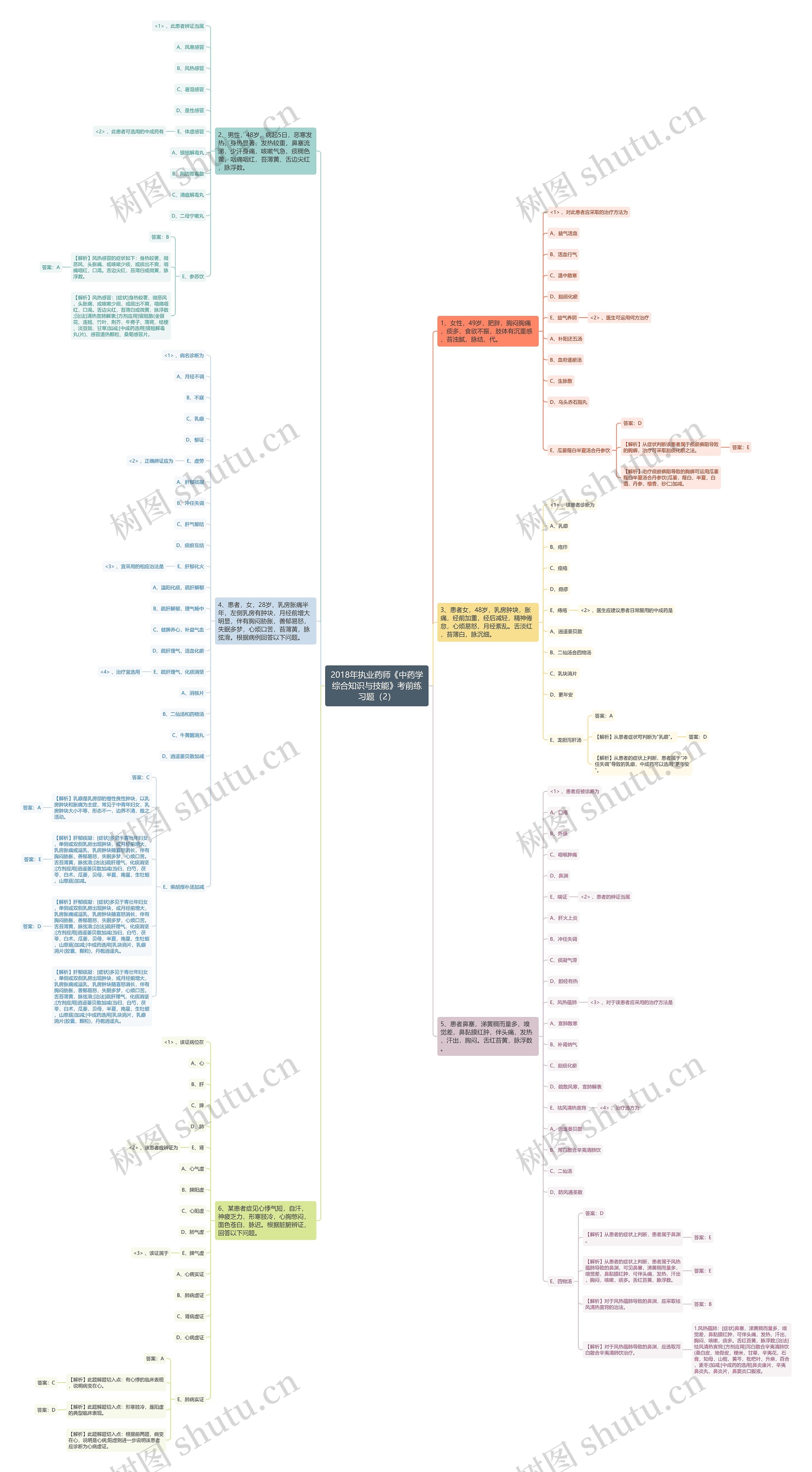 3、患者女,48岁,乳房肿块,胀痛,经前加重,经后减轻,精神倦怠,心烦易怒,月经紊乱。舌淡红,苔薄白,脉沉细。