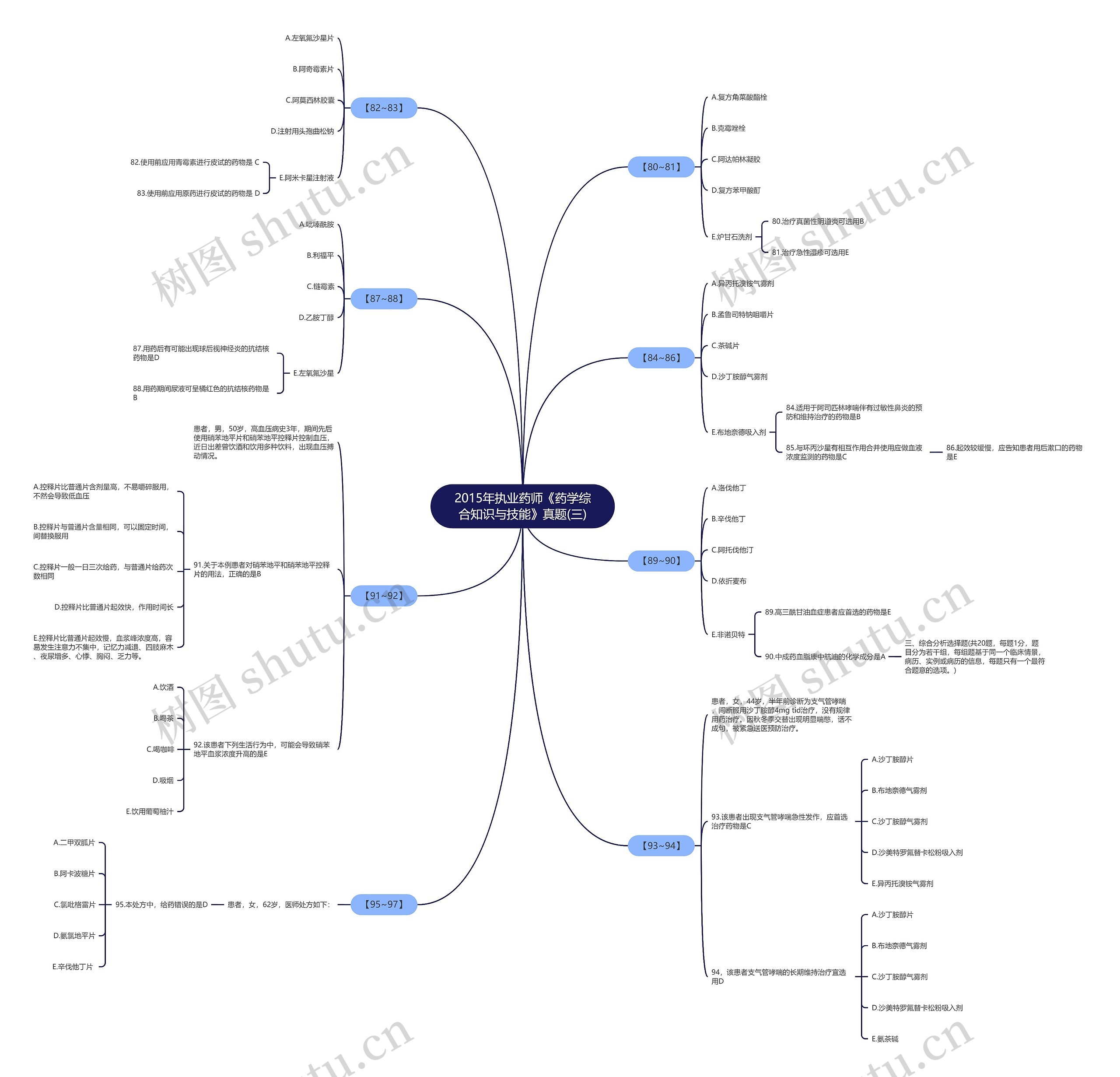 树图思维导图提供《2015年执业药师《药学综合知识与技能》真题(三)》在线思维导图免费制作,点击“编辑”按钮,可对《2015年执业药师《药学综合知识与技能》真题(三)》进行在线思维导图编辑,本思维导图属于思维导图模板主题,文件编号是:5be5083dec2e595ad09c8eba609f939c