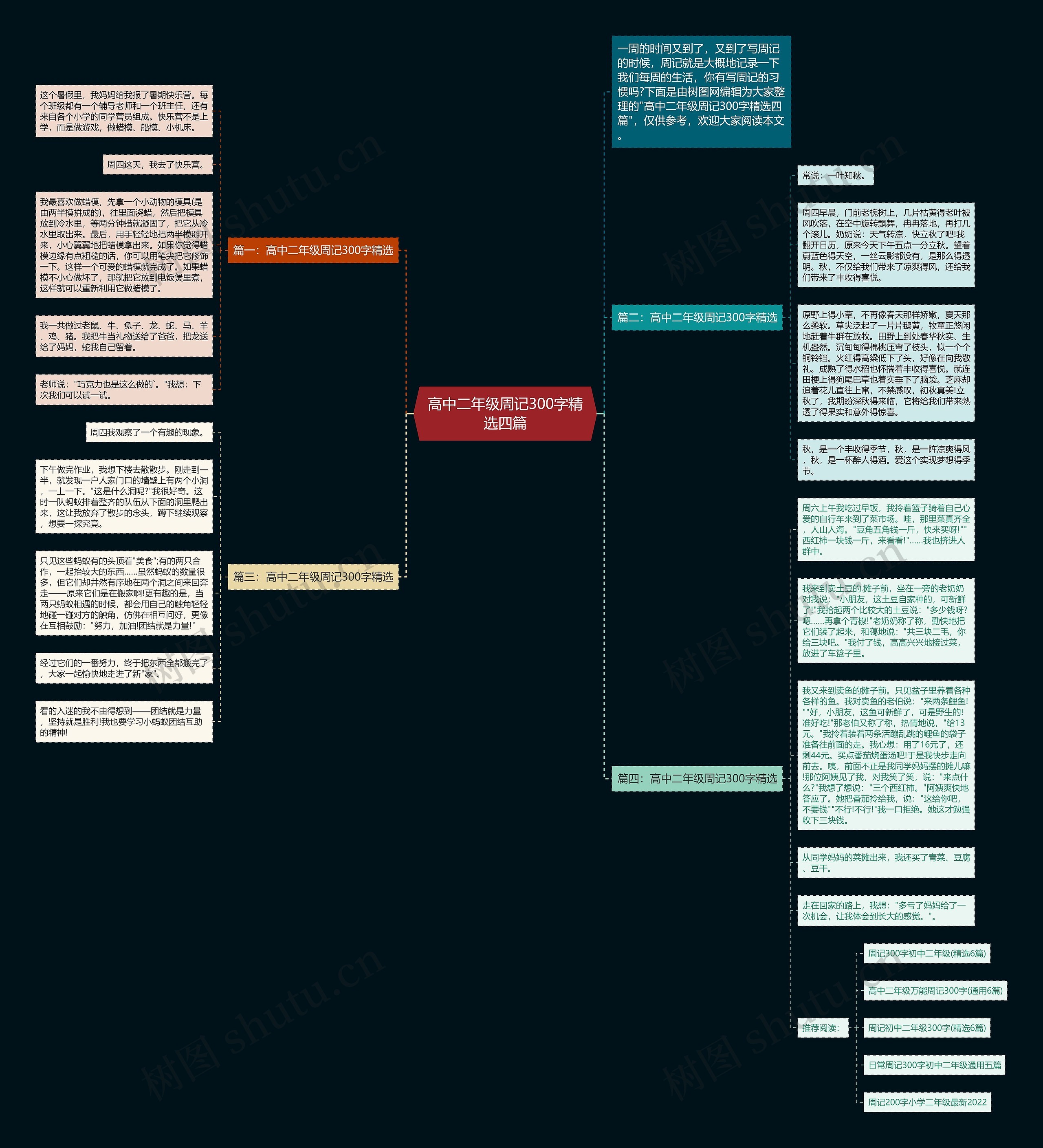 树图思维导图提供《高中二年级周记300字精选四篇》在线思维导图免费制作,点击“编辑”按钮,可对《高中二年级周记300字精选四篇》进行在线思维导图编辑,本思维导图属于思维导图模板主题,文件编号是:96964bc781dada035628396368c33883