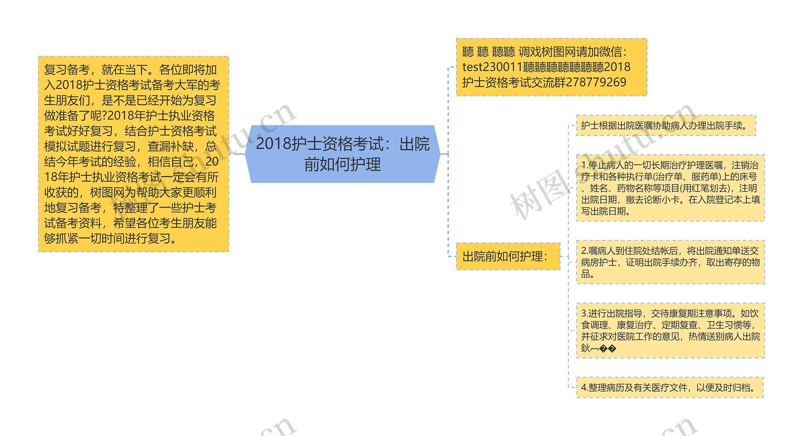 树图思维导图提供《2018护士资格考试:出院前如何护理》在线思维导图免费制作,点击“编辑”按钮,可对《2018护士资格考试:出院前如何护理》进行在线思维导图编辑,本思维导图属于思维导图模板主题,文件编号是:200900b38ad285d2cb6b31305d382b9a