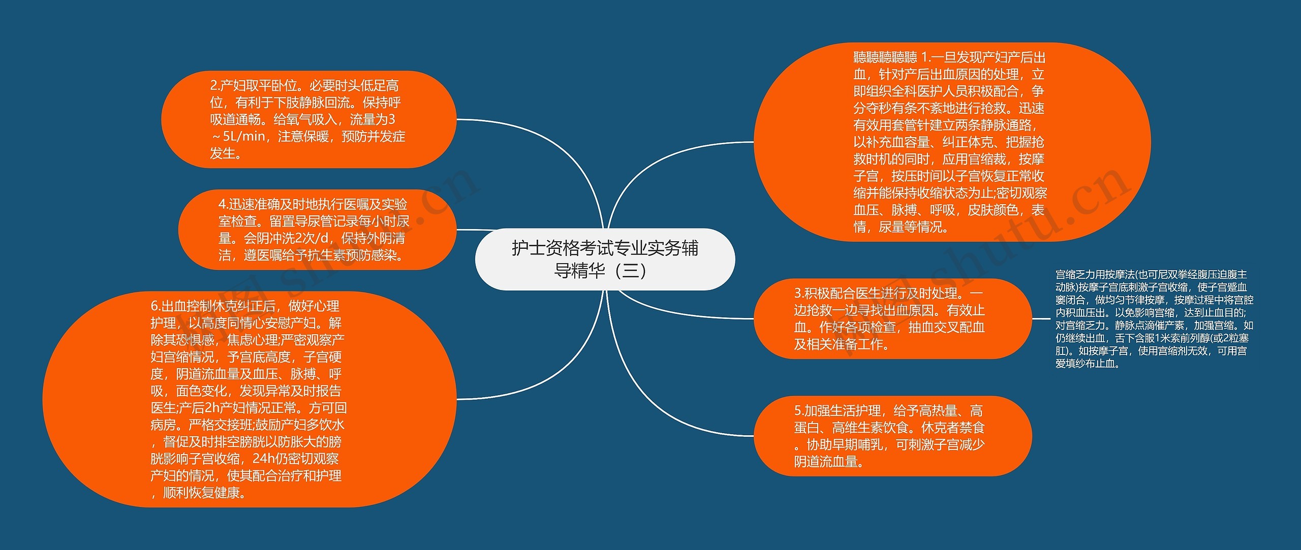 5.加强生活护理,给予高热量、高蛋白、高维生素饮食。休克者禁食。协助早期哺乳,可刺激子宫减少阴道流血量。