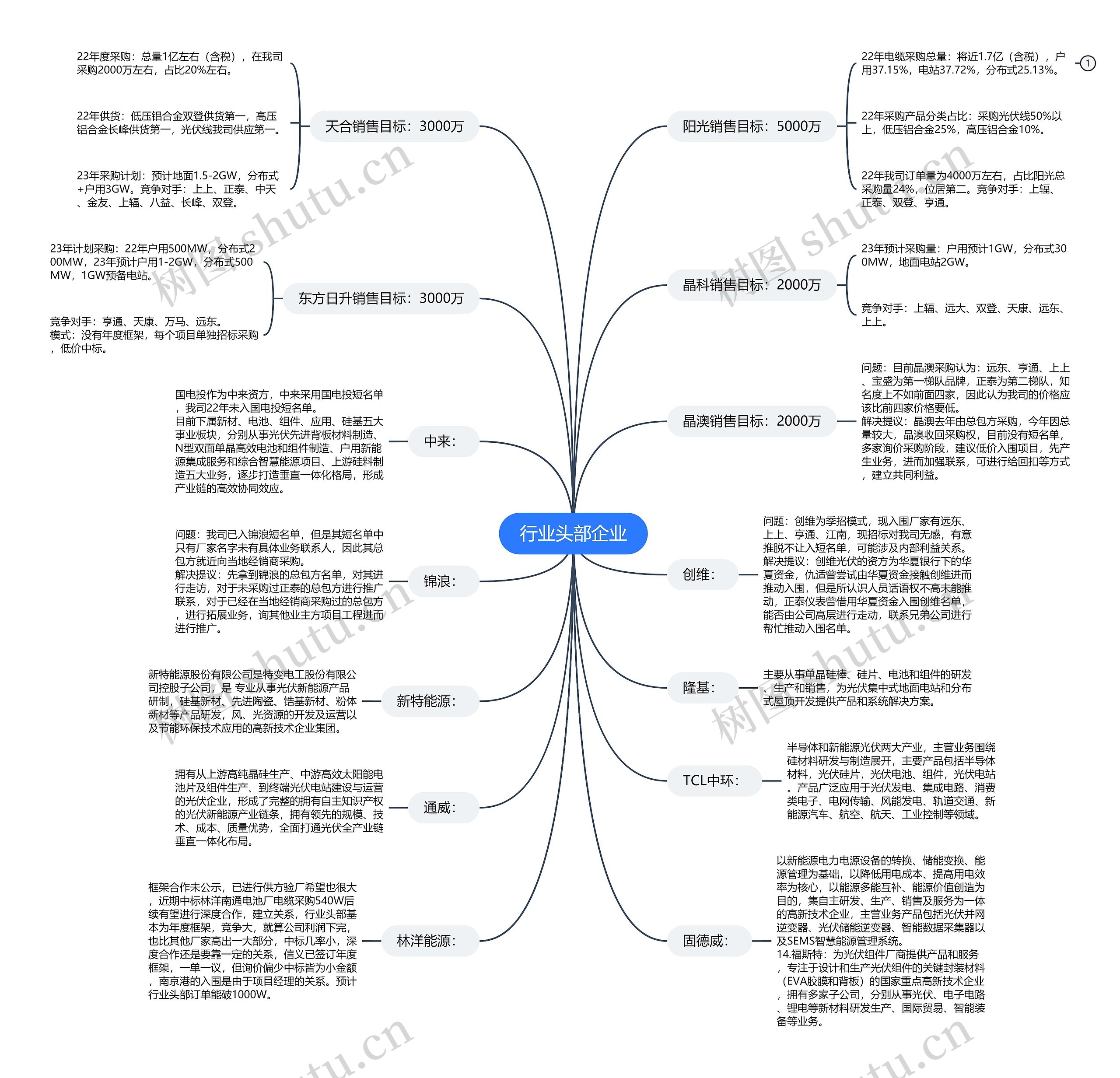 树图思维导图提供《行业头部企业》在线思维导图免费制作,点击“编辑”按钮,可对《行业头部企业》进行在线思维导图编辑,本思维导图属于思维导图模板主题,文件编号是:59e6630ef915864e84750cf0f0bf6a6e