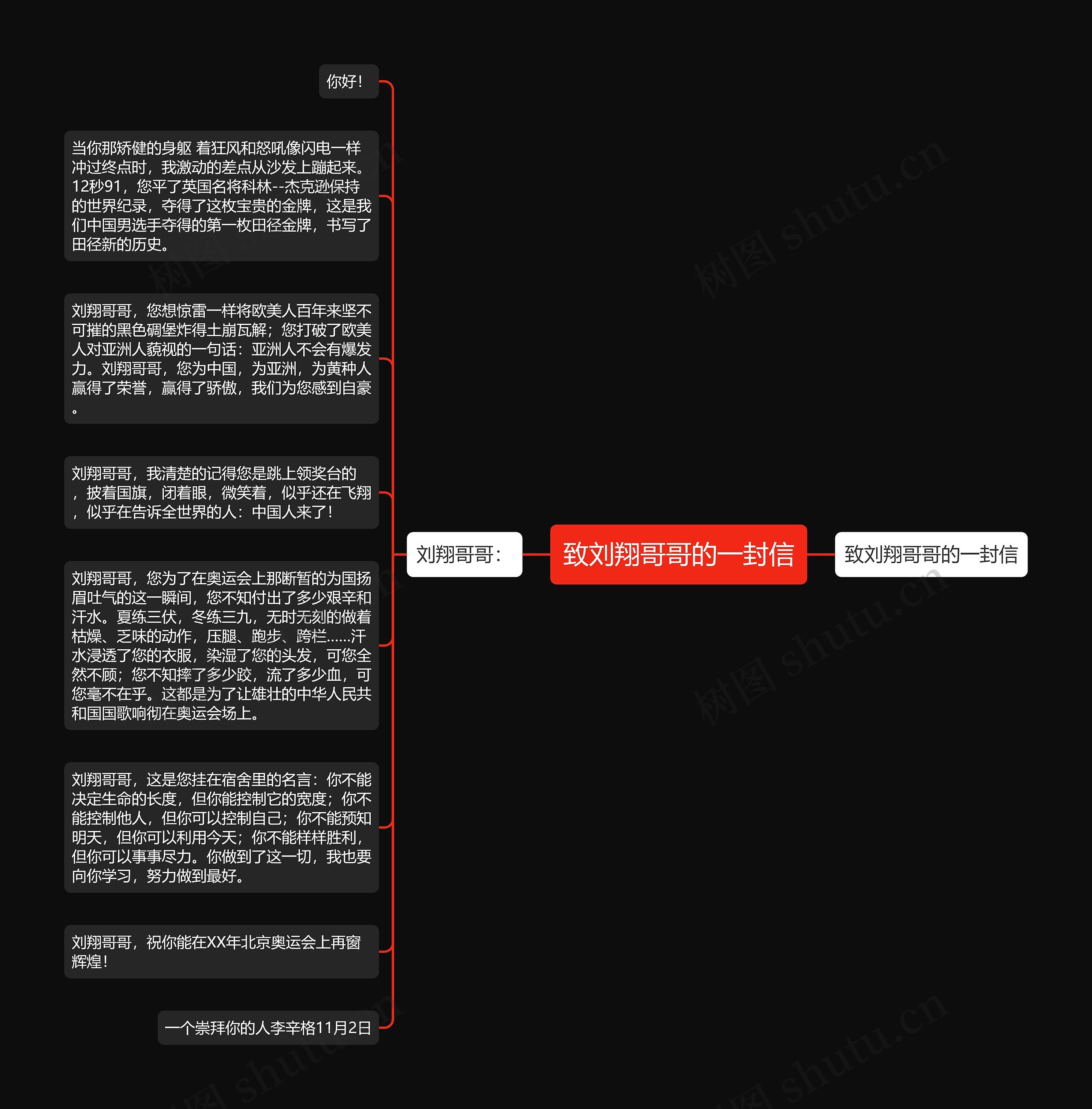 刘翔哥哥,您想惊雷一样将欧美人百年来坚不可摧的黑色碉堡炸得土崩瓦解;您打破了欧美人对亚洲人藐视的一句话:亚洲人不会有爆发力。刘翔哥哥,您为中国,为亚洲,为黄种人赢得了荣誉,赢得了骄傲,我们为您感到自豪。