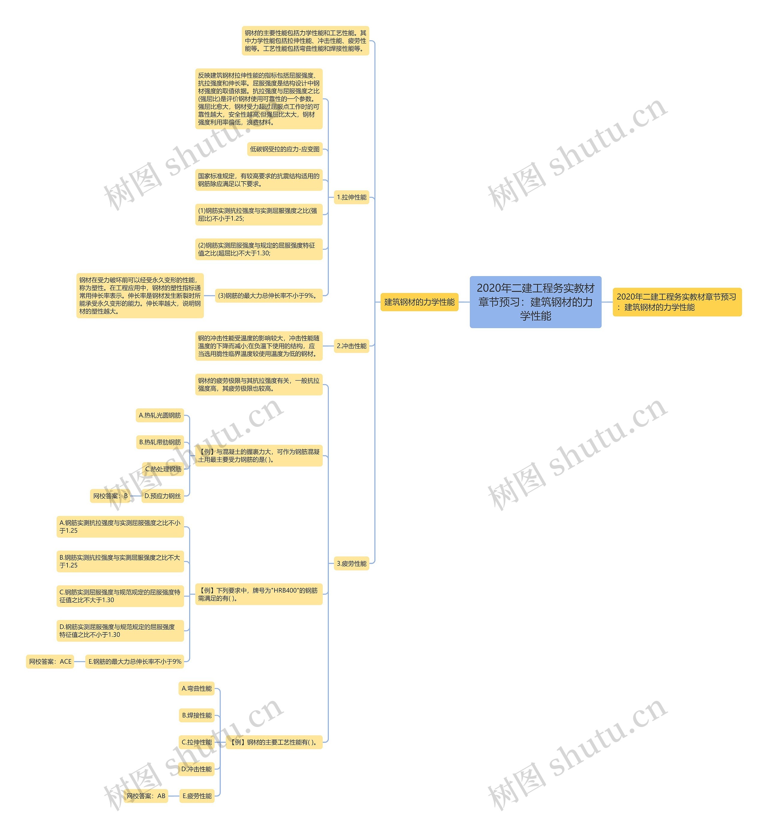 树图思维导图提供《2020年二建工程务实教材章节预习:建筑钢材的力学性能》在线思维导图免费制作,点击“编辑”按钮,可对《2020年二建工程务实教材章节预习:建筑钢材的力学性能》进行在线思维导图编辑,本思维导图属于思维导图模板主题,文件编号是:3bf94ad3366d803888c48d812fda19e9