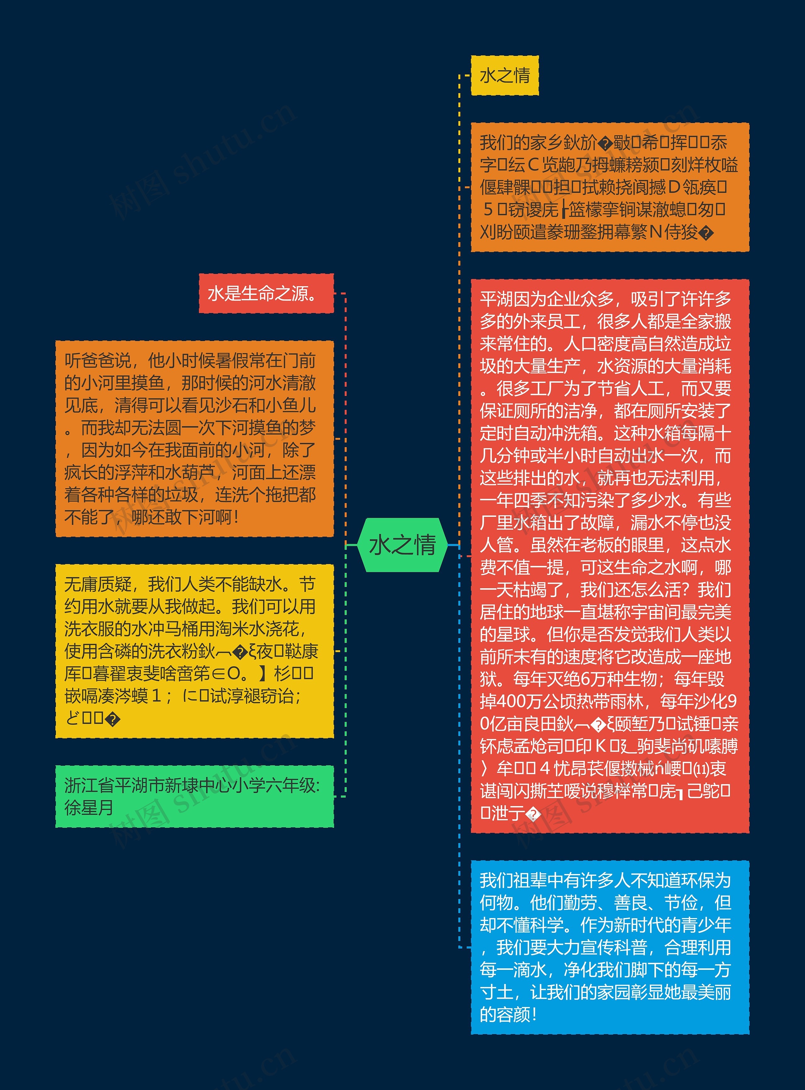 听爸爸说,他小时候暑假常在门前的小河里摸鱼,那时候的河水清澈见底,清得可以看见沙石和小鱼儿。而我却无法圆一次下河摸鱼的梦,因为如今在我面前的小河,除了疯长的浮萍和水葫芦,河面上还漂着各种各样的垃圾,连洗个拖把都不能了,哪还敢下河啊!