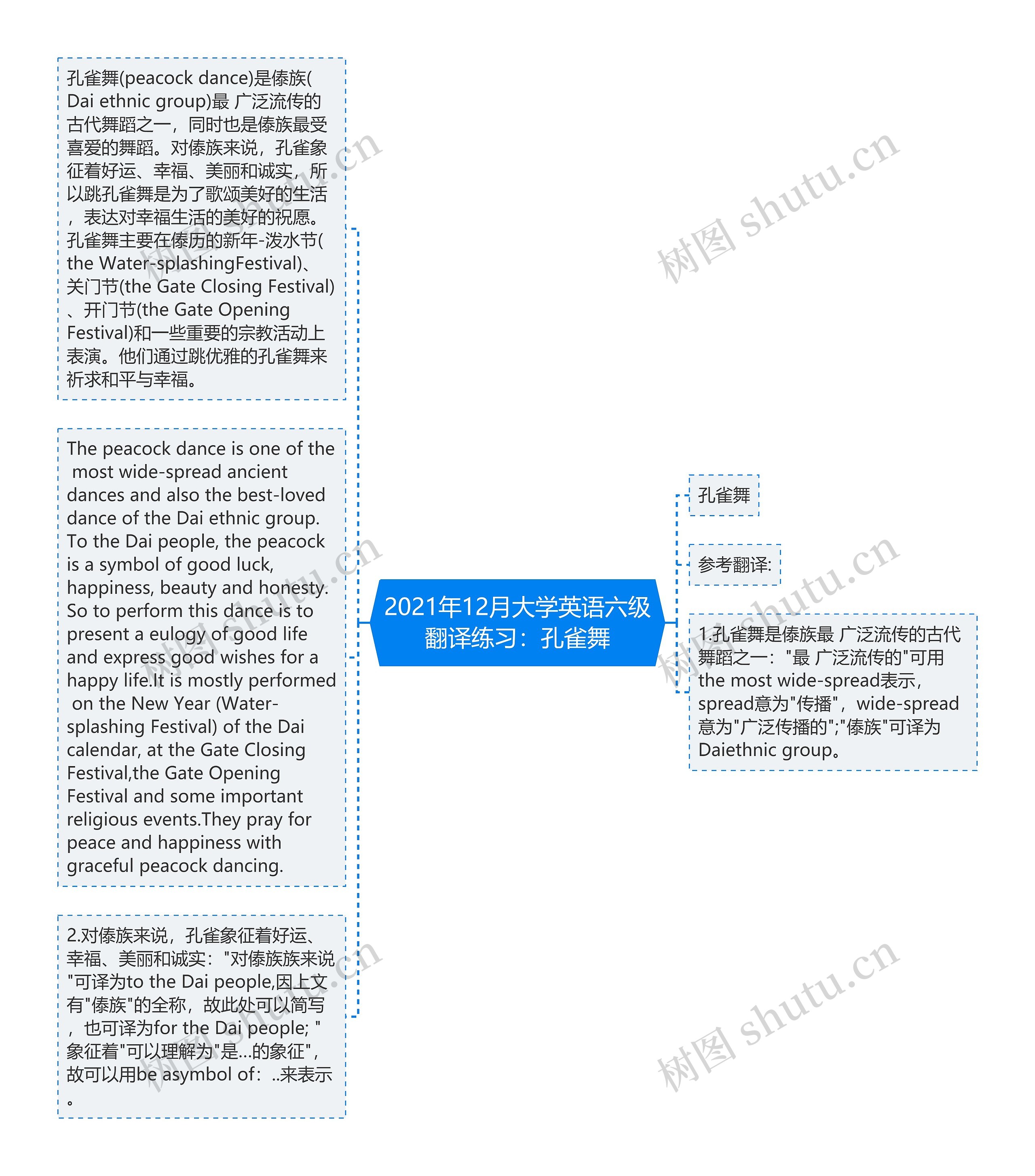 1.孔雀舞是傣族最 广泛流传的古代舞蹈之一:"最 广泛流传的"可用the most wide-spread表示,spread意为"传播",wide-spread意为"广泛传播的";"傣族"可译为Daiethnic group。