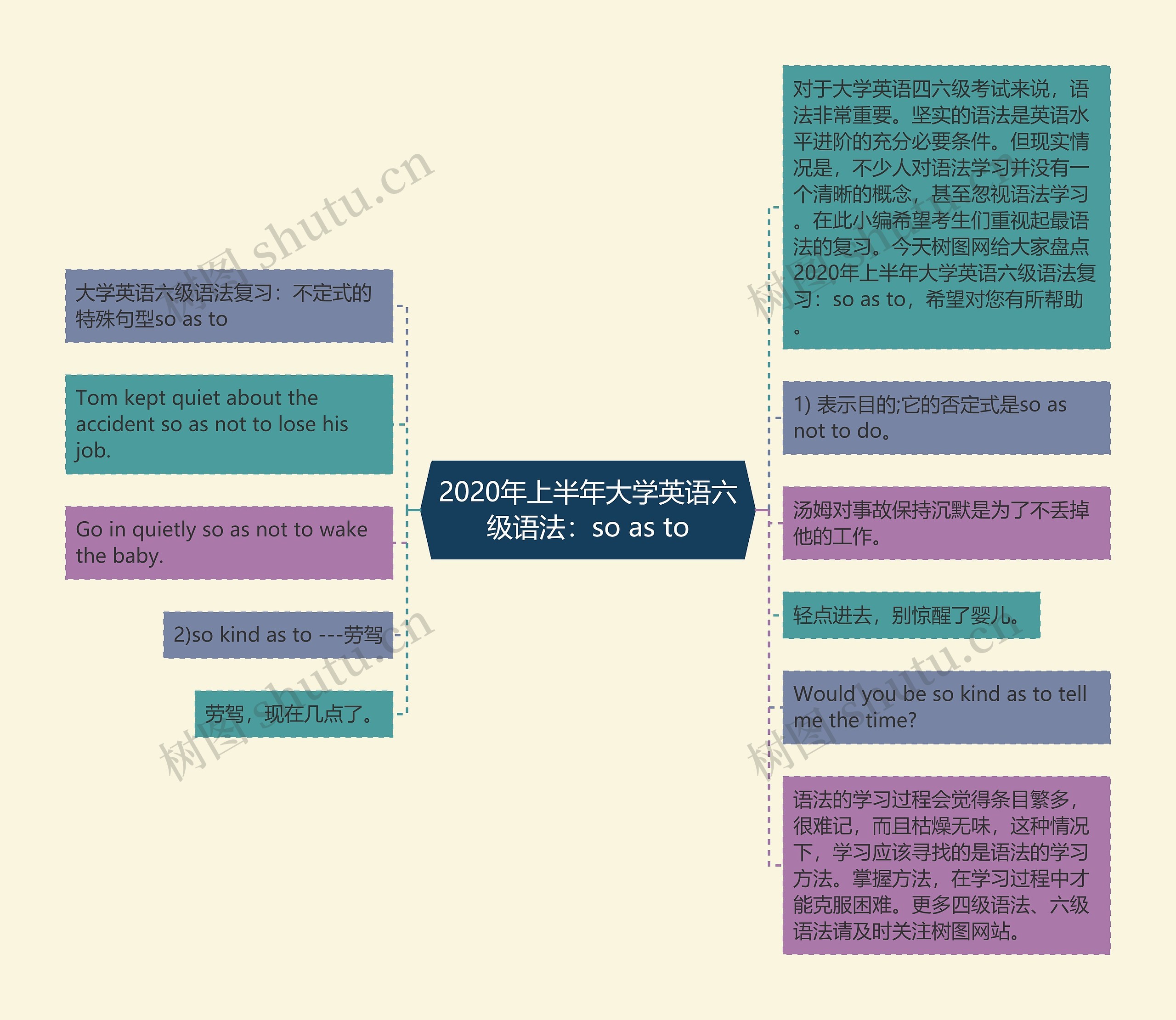 对于大学英语四六级考试来说,语法非常重要。坚实的语法是英语水平进阶的充分必要条件。但现实情况是,不少人对语法学习并没有一个清晰的概念,甚至忽视语法学习。在此小编希望考生们重视起最语法的复习。今天树图网给大家盘点2020年上半年大学英语六级语法复习:so as to,希望对您有所帮助。