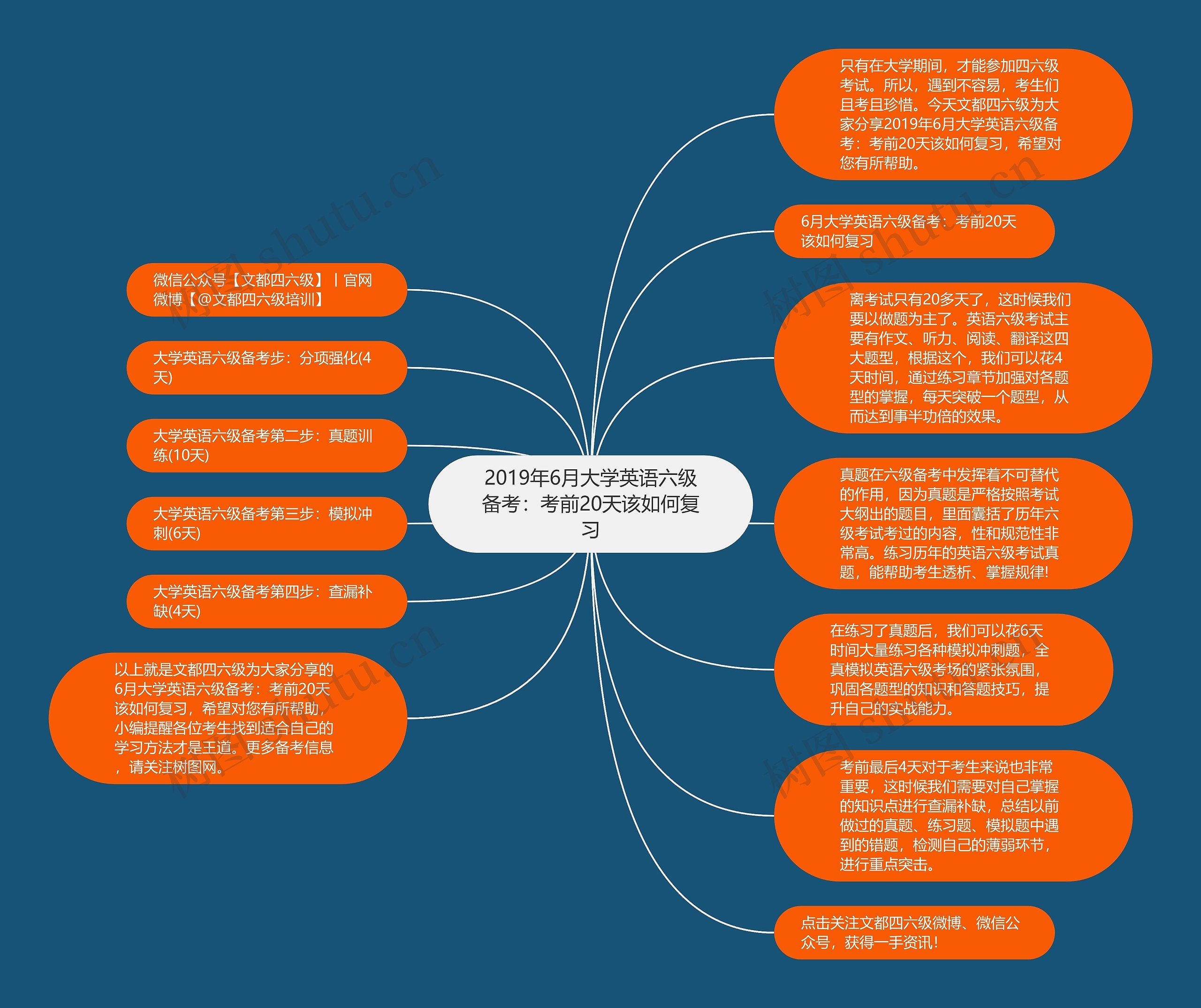 以上就是文都四六级为大家分享的6月大学英语六级备考:考前20天该如何复习,希望对您有所帮助,小编提醒各位考生找到适合自己的学习方法才是王道。更多备考信息,请关注树图网。