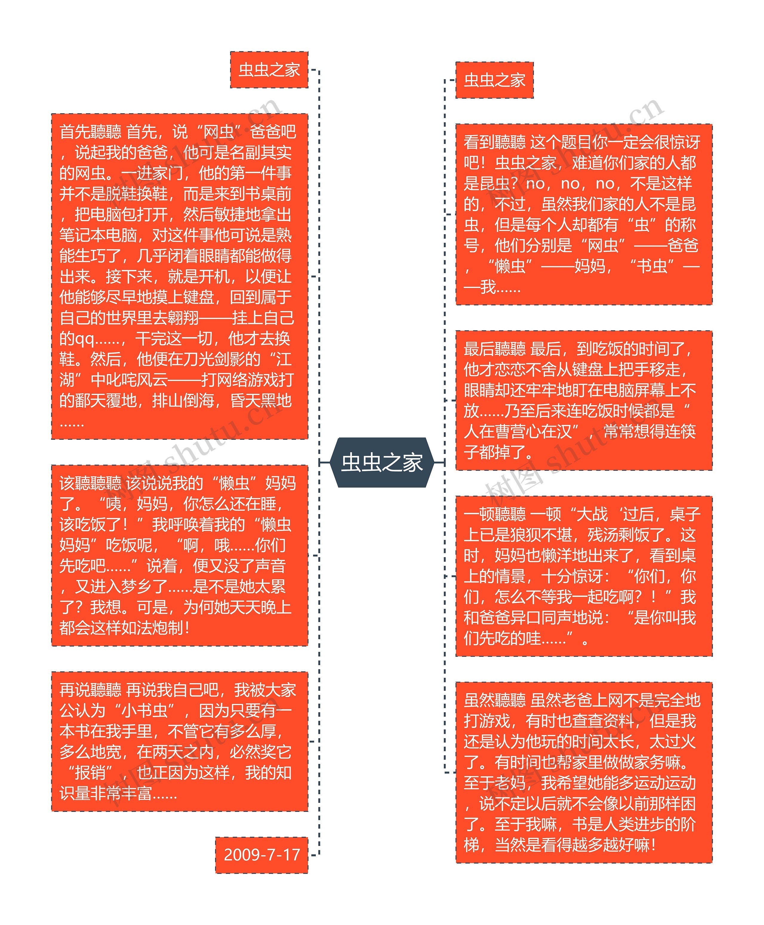 看到聽聽 这个题目你一定会很惊讶吧!虫虫之家,难道你们家的人都是昆虫?no,no,no,不是这样的,不过,虽然我们家的人不是昆虫,但是每个人却都有“虫”的称号,他们分别是“网虫”——爸爸,“懒虫”——妈妈,“书虫”——我……