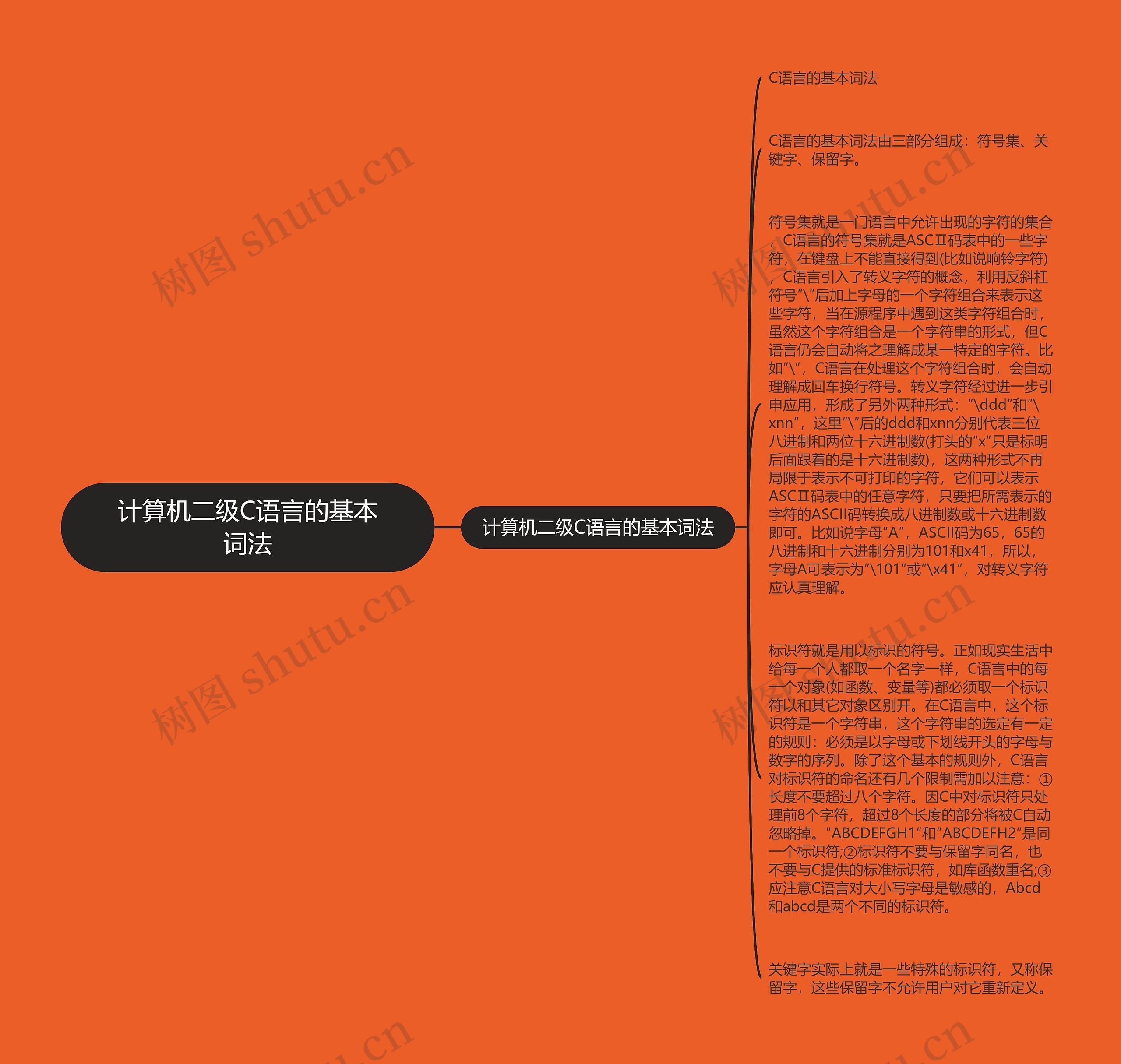 C语言的基本词法由三部分组成:符号集、关键字、保留字。