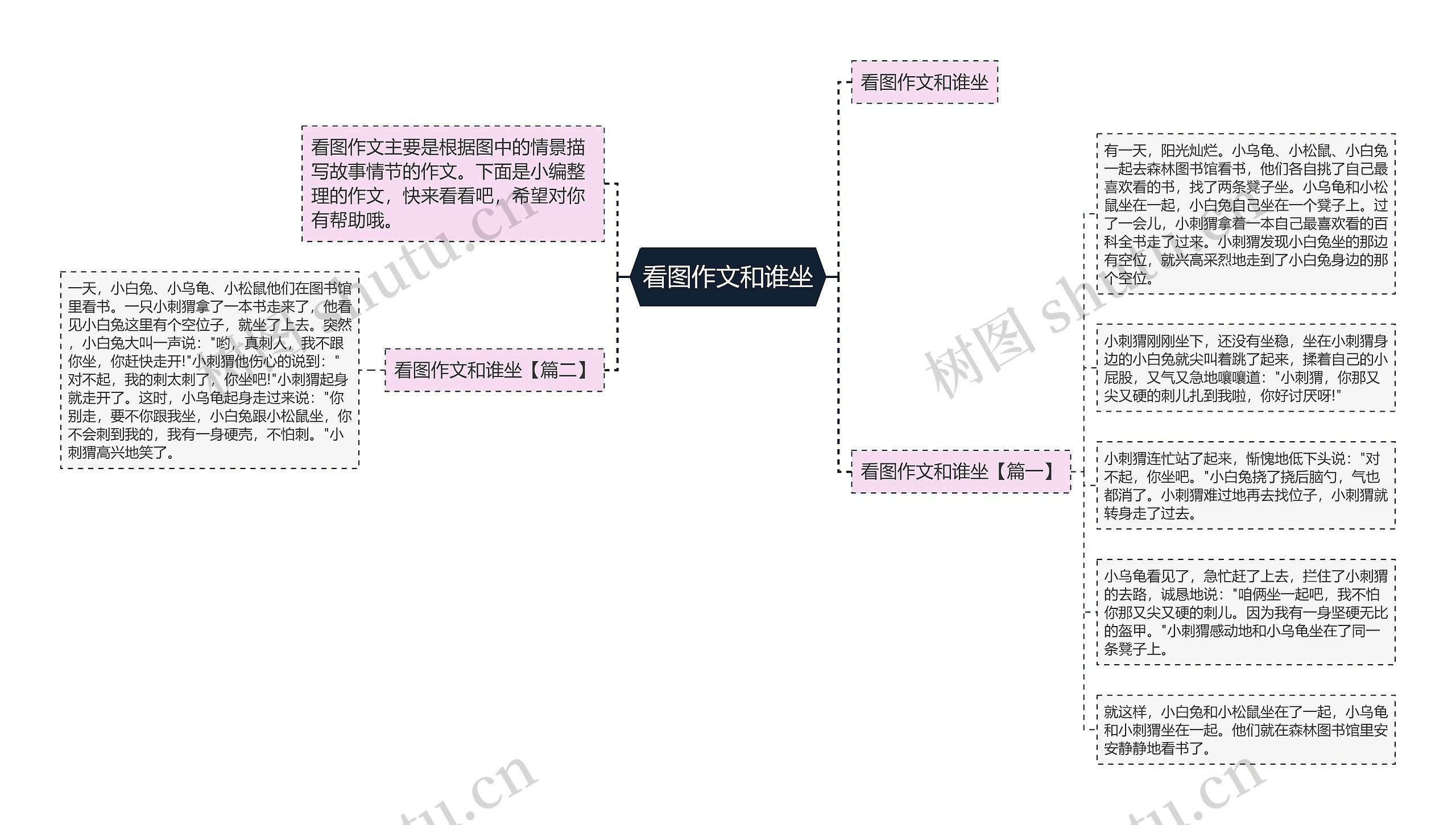 有一天,阳光灿烂。小乌龟、小松鼠、小白兔一起去森林图书馆看书,他们各自挑了自己最喜欢看的书,找了两条凳子坐。小乌龟和小松鼠坐在一起,小白兔自己坐在一个凳子上。过了一会儿,小刺猬拿着一本自己最喜欢看的百科全书走了过来。小刺猬发现小白兔坐的那边有空位,就兴高采烈地走到了小白兔身边的那个空位。