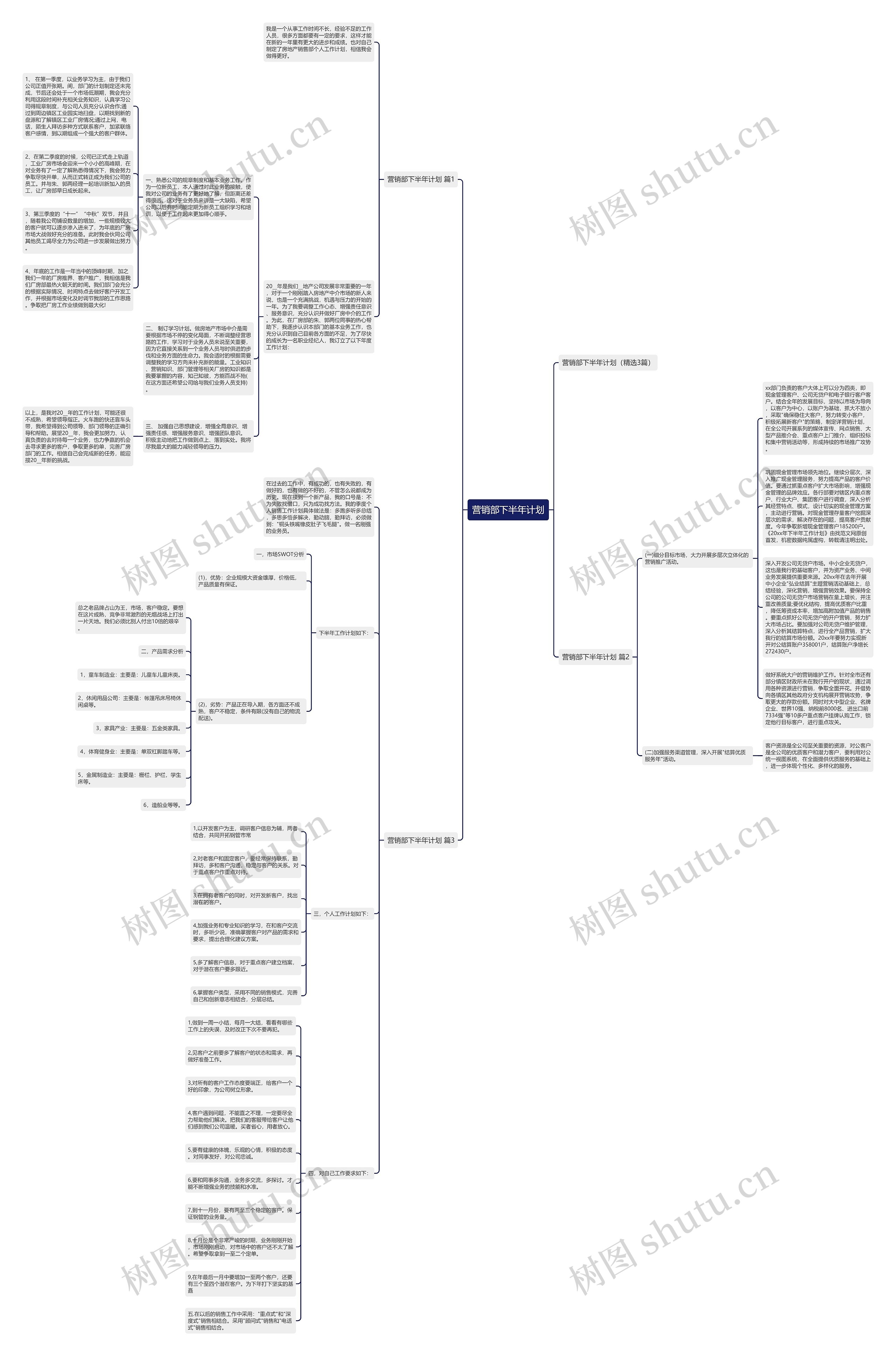树图思维导图提供《营销部下半年计划》在线思维导图免费制作,点击“编辑”按钮,可对《营销部下半年计划》进行在线思维导图编辑,本思维导图属于思维导图模板主题,文件编号是:5331defbb923f074959d7481998fc77c