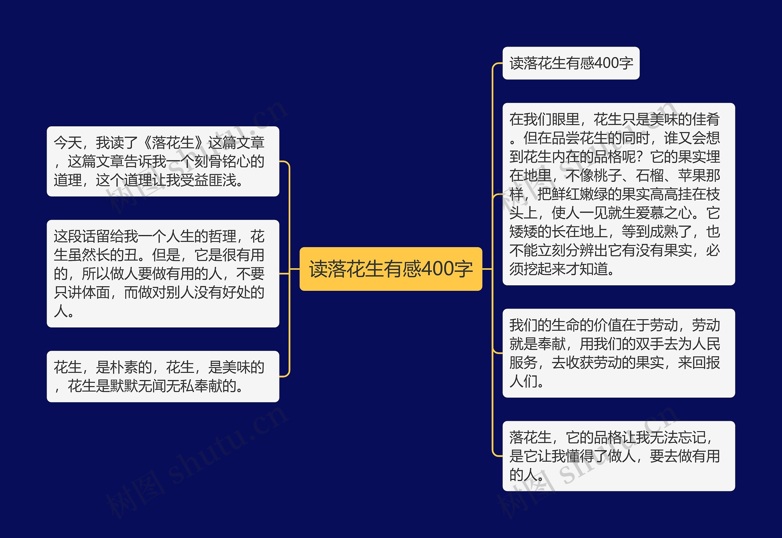 树图思维导图提供《读落花生有感400字》在线思维导图免费制作,点击“编辑”按钮,可对《读落花生有感400字》进行在线思维导图编辑,本思维导图属于思维导图模板主题,文件编号是:c4911ea3f87518d96231d15509f70c86