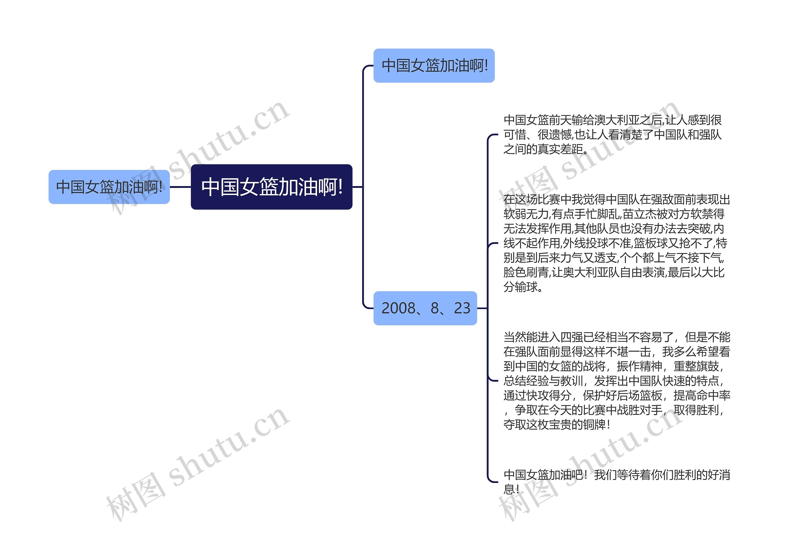 树图思维导图提供《中国女篮加油啊!》在线思维导图免费制作,点击“编辑”按钮,可对《中国女篮加油啊!》进行在线思维导图编辑,本思维导图属于思维导图模板主题,文件编号是:4d9fe305839edcd1e598217435bde0b4