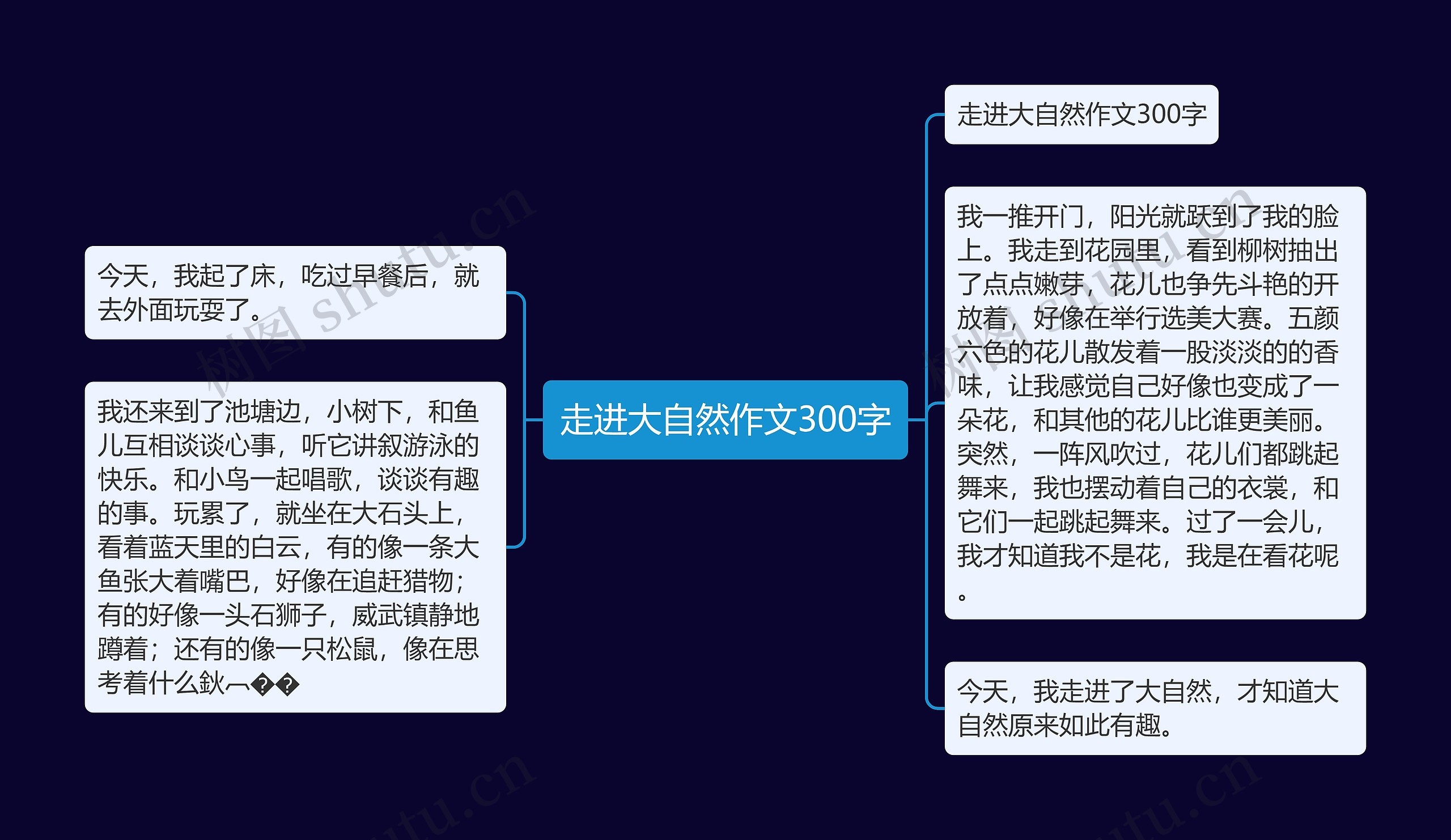 树图思维导图提供《走进大自然作文300字》在线思维导图免费制作,点击“编辑”按钮,可对《走进大自然作文300字》进行在线思维导图编辑,本思维导图属于思维导图模板主题,文件编号是:d28026d423d9791000a5514cec3154e4