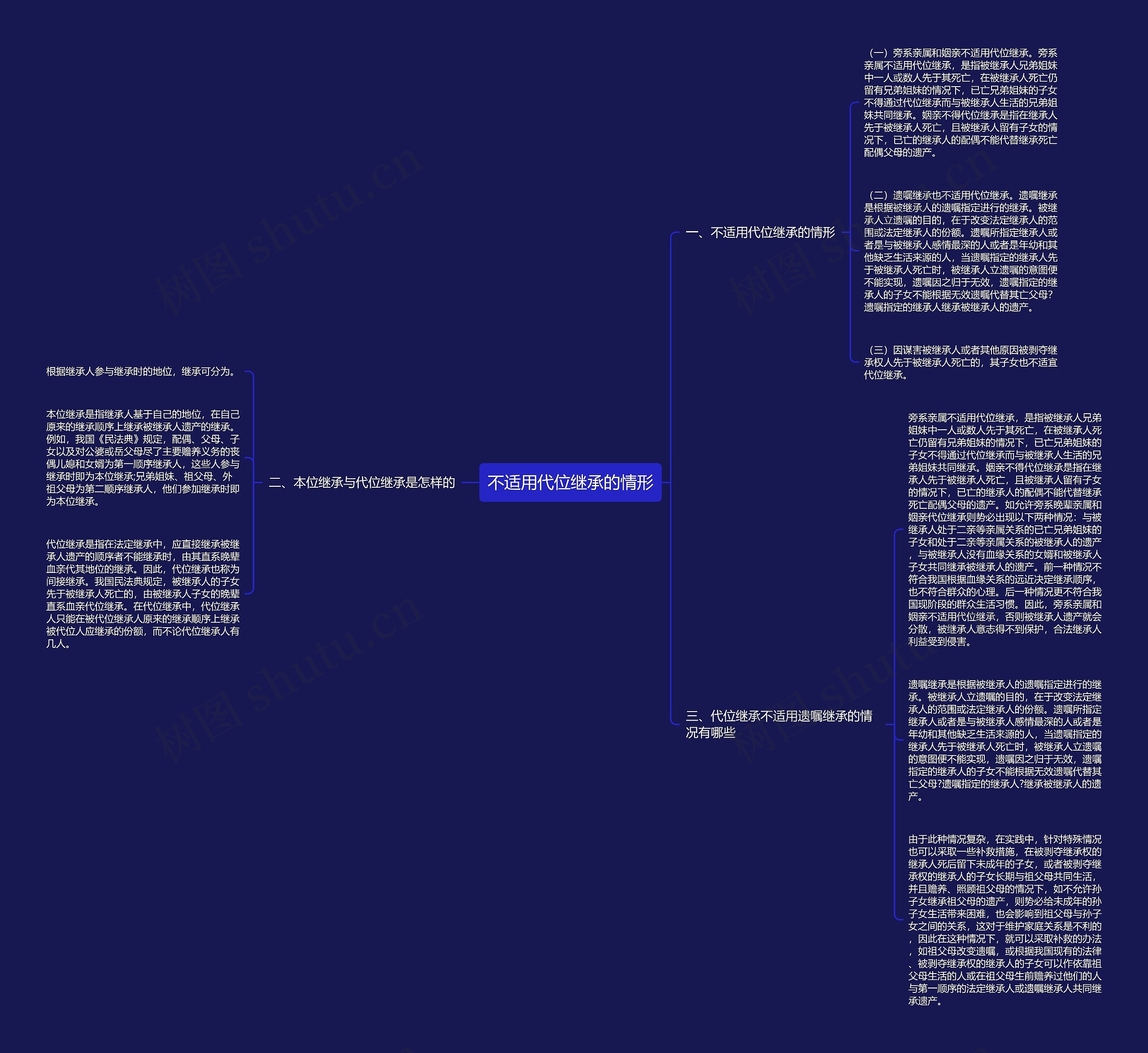 旁系亲属不适用代位继承,是指被继承人兄弟姐妹中一人或数人先于其死亡,在被继承人死亡仍留有兄弟姐妹的情况下,已亡兄弟姐妹的子女不得通过代位继承而与被继承人生活的兄弟姐妹共同继承。姻亲不得代位继承是指在继承人先于被继承人死亡,且被继承人留有子女的情况下,已亡的继承人的配偶不能代替继承死亡配偶父母的遗产。如允许旁系晚辈亲属和姻亲代位继承则势必出现以下两种情况:与被继承人处于二亲等亲属关系的已亡兄弟姐妹的子女和处于二亲等亲属关系的被继承人的遗产,与被继承人没有血缘关系的女婿和被继承人子女共同继承被继承人的遗产。前一种情况不符合我国根据血缘关系的远近决定继承顺序,也不符合群众的心理。后一种情况更不符合我国现阶段的群众生活习惯。因此,旁系亲属和姻亲不适用代位继承,否则被继承人遗产就会分散,被继承人意志得不到保护,合法继承人利益受到侵害。
