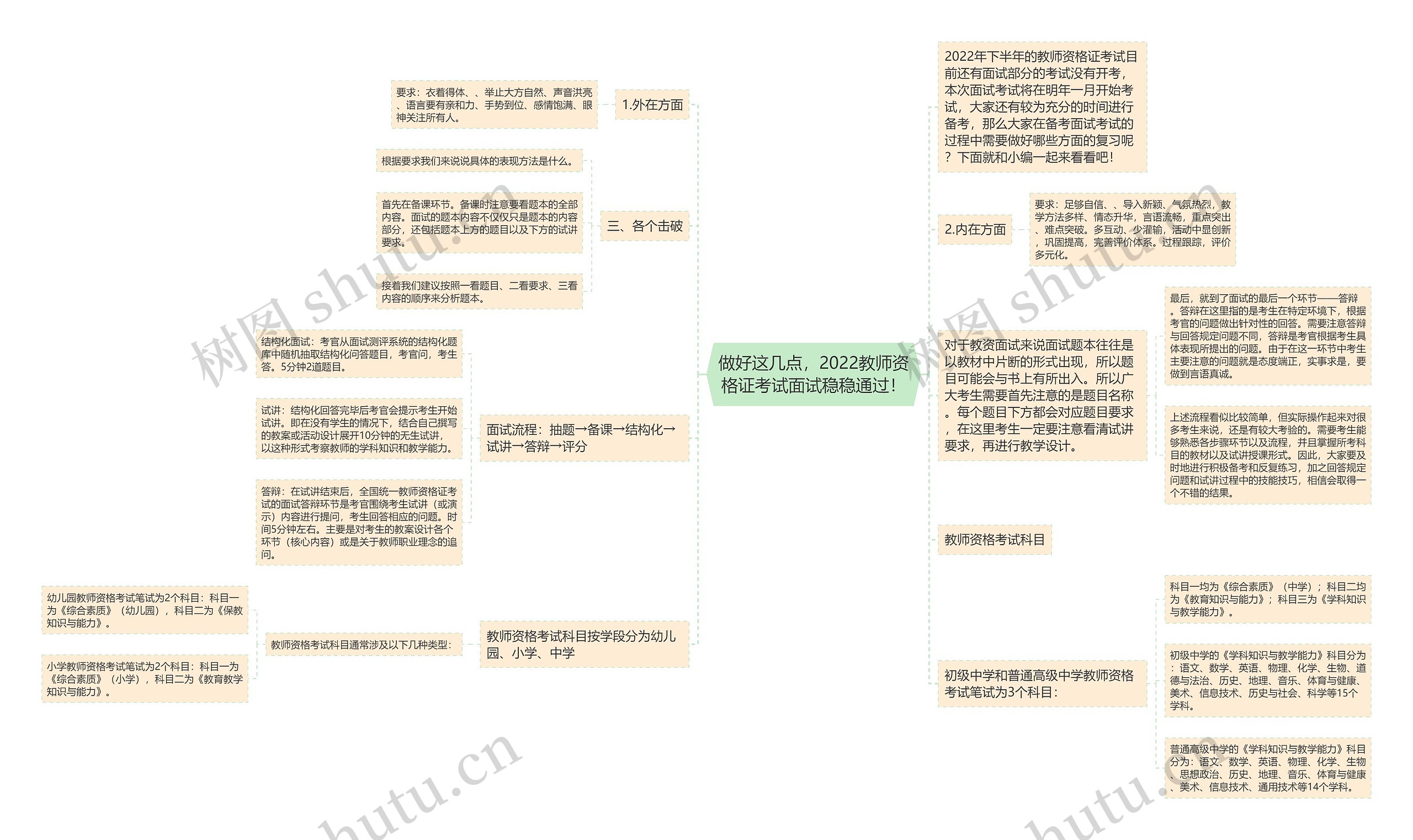 树图思维导图提供《做好这几点,2022教师资格证考试面试稳稳通过!》在线思维导图免费制作,点击“编辑”按钮,可对《做好这几点,2022教师资格证考试面试稳稳通过!》进行在线思维导图编辑,本思维导图属于思维导图模板主题,文件编号是:1602bf9c33414098e2962cb42b8cbdcc