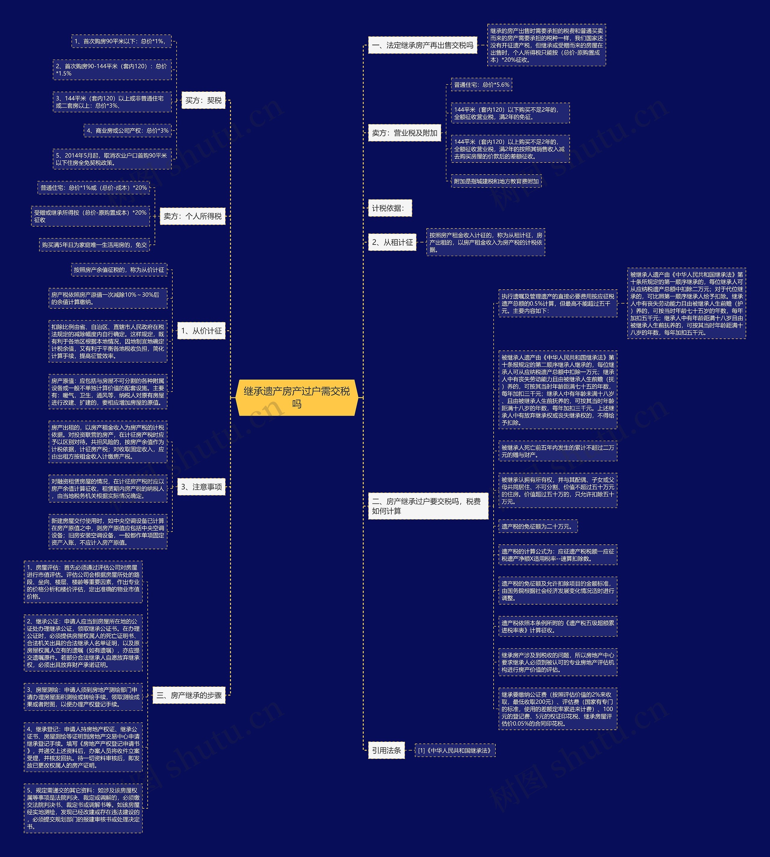 继承要缴纳公证费(按照评估价值的2%来收取,最低收取200元)、评估费(国家有专门的标准,使用的差额定率累进来计费)、100元的登记费、5元的权证印花税、继承房屋评估价0.05%的合同印花税。