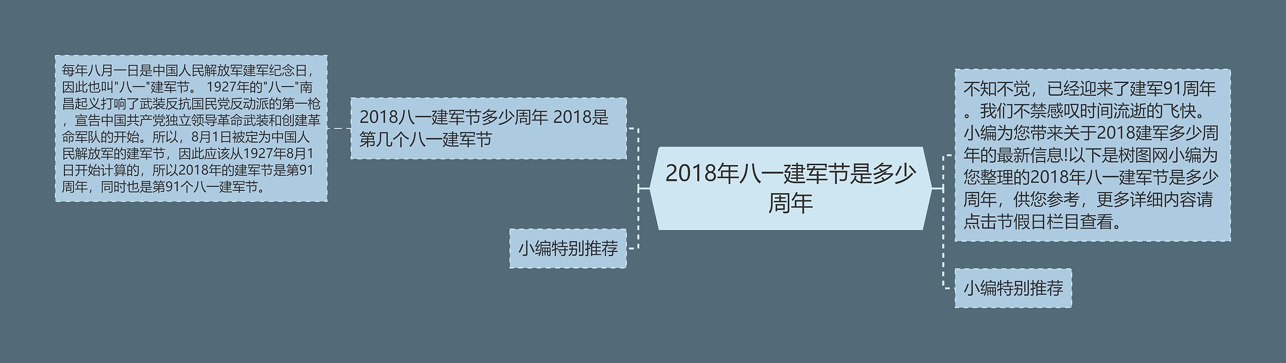 树图思维导图提供《2018年八一建军节是多少周年》在线思维导图免费制作,点击“编辑”按钮,可对《2018年八一建军节是多少周年》进行在线思维导图编辑,本思维导图属于思维导图模板主题,文件编号是:75efc962e291c087e2902fd3cd37c567