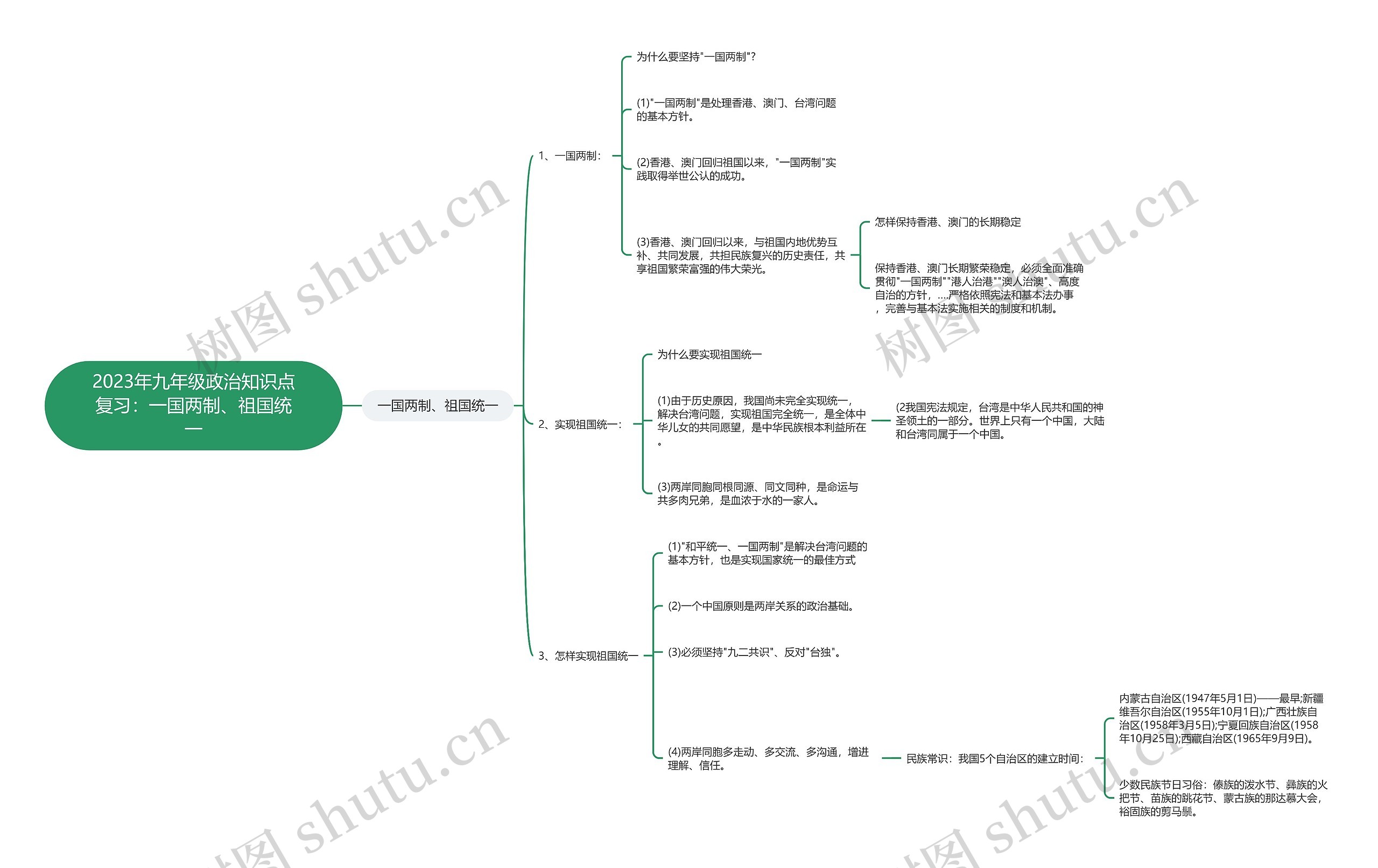 树图思维导图提供《2023年九年级政治知识点复习:一国两制、祖国统一》在线思维导图免费制作,点击“编辑”按钮,可对《2023年九年级政治知识点复习:一国两制、祖国统一》进行在线思维导图编辑,本思维导图属于思维导图模板主题,文件编号是:8fdd1039d663907afeb4450e6e87ddaa