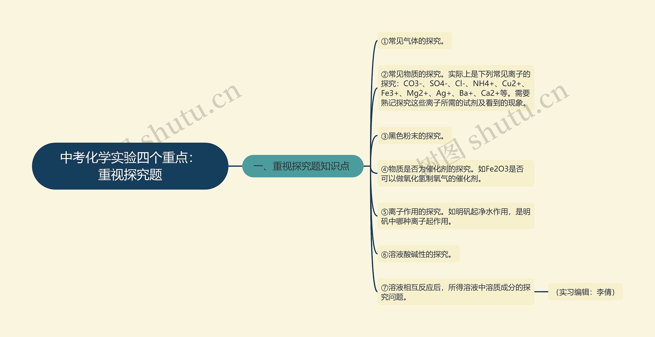 树图思维导图提供《中考化学实验四个重点:重视探究题》在线思维导图免费制作,点击“编辑”按钮,可对《中考化学实验四个重点:重视探究题》进行在线思维导图编辑,本思维导图属于思维导图模板主题,文件编号是:819b07c87d892032470ed9bce6ccfe87