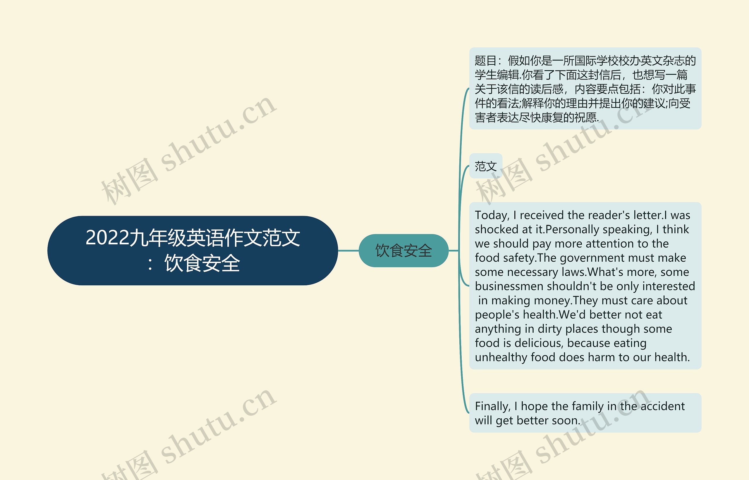 Today, I received the reader's letter.I was shocked at it.Personally speaking, I think we should pay more attention to the food safety.The government must make some necessary laws.What's more, some businessmen shouldn't be only interested in making money.They must care about people's health.We'd better not eat anything in dirty places though some food is delicious, because eating unhealthy food does harm to our health.