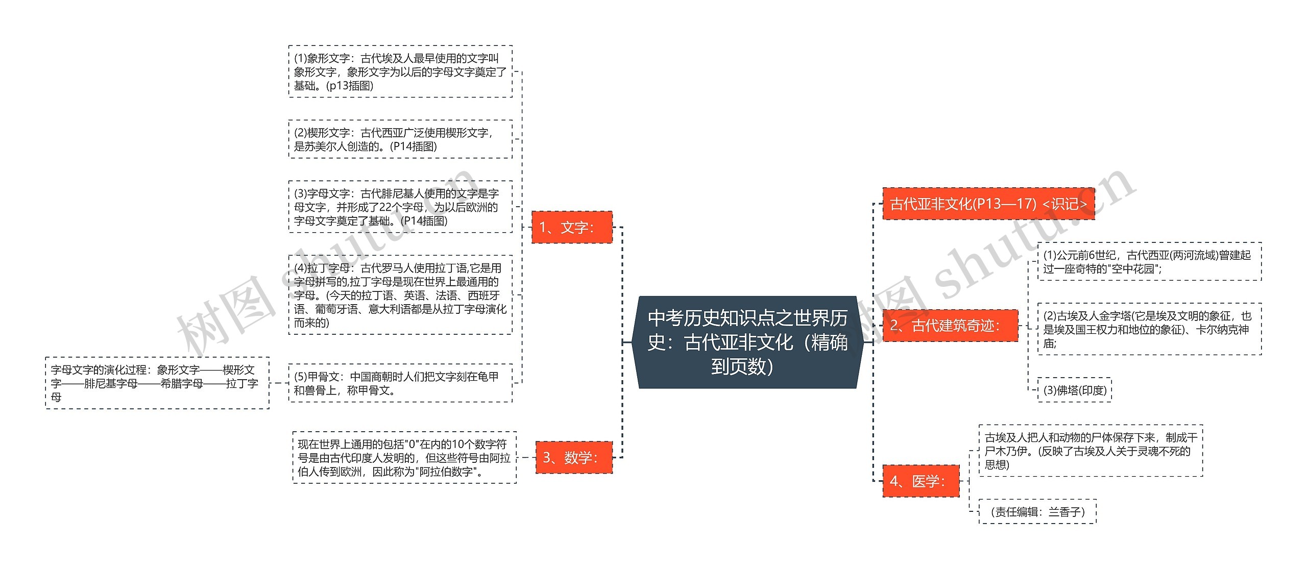 树图思维导图提供《中考历史知识点之世界历史:古代亚非文化(精确到页数)》在线思维导图免费制作,点击“编辑”按钮,可对《中考历史知识点之世界历史:古代亚非文化(精确到页数)》进行在线思维导图编辑,本思维导图属于思维导图模板主题,文件编号是:14809f96166b431dd3982c1a67956dff